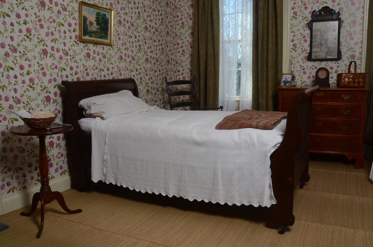 So why is Dickinson remembered for her solitude in such a one-dimensional way? Starting in her late 30s, she seldom left her father’s home, where she lived. She never married. And when she was seen about town, she always dressed in white. She started to speak to visitors through her bedroom door instead of face-to-face. When her father died, the funeral took place at the family home, but she remained in her room, creaked the door open, and just listened.