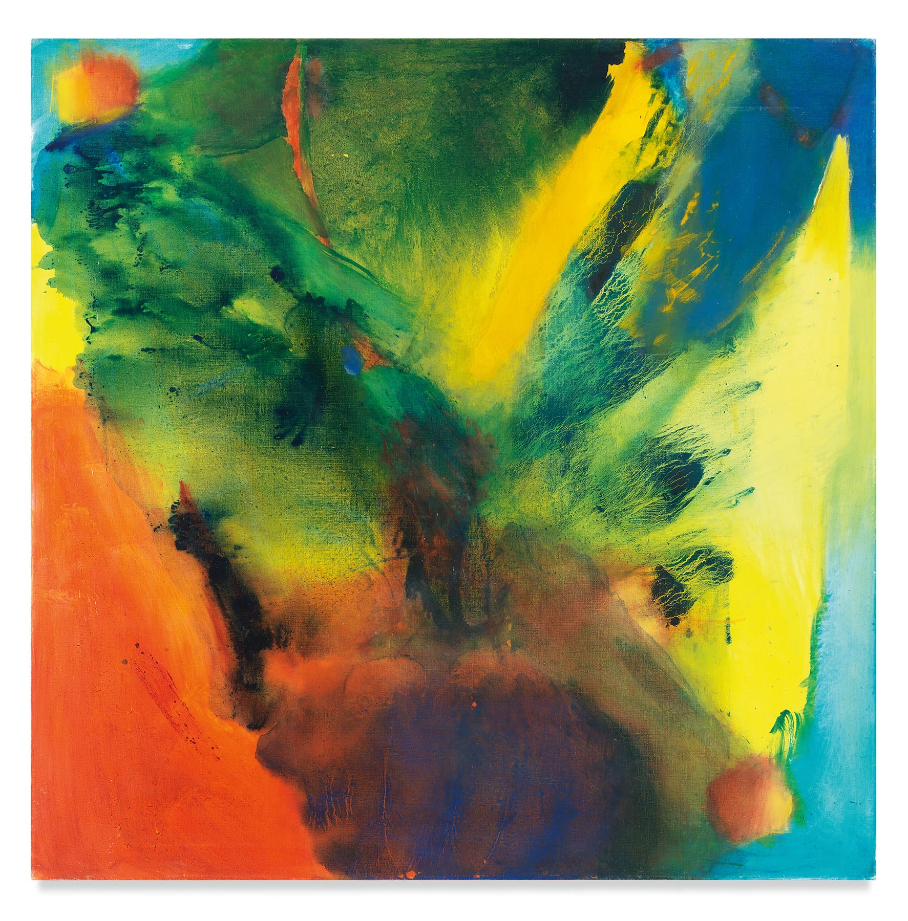 Mason tried new things in her Chelsea studio. The paintings she made there were bigger, and on canvas. In the 1960s and 70s she’d worked mostly on paper because “she could shuffle them away when the kids came home,” Rose explains. Once she had an entire floor to cover with works in progress, she could work on canvases in the 50 and 60-inches range. She could even work on ten of these at a time, letting the paint speak to her, as she liked to say.