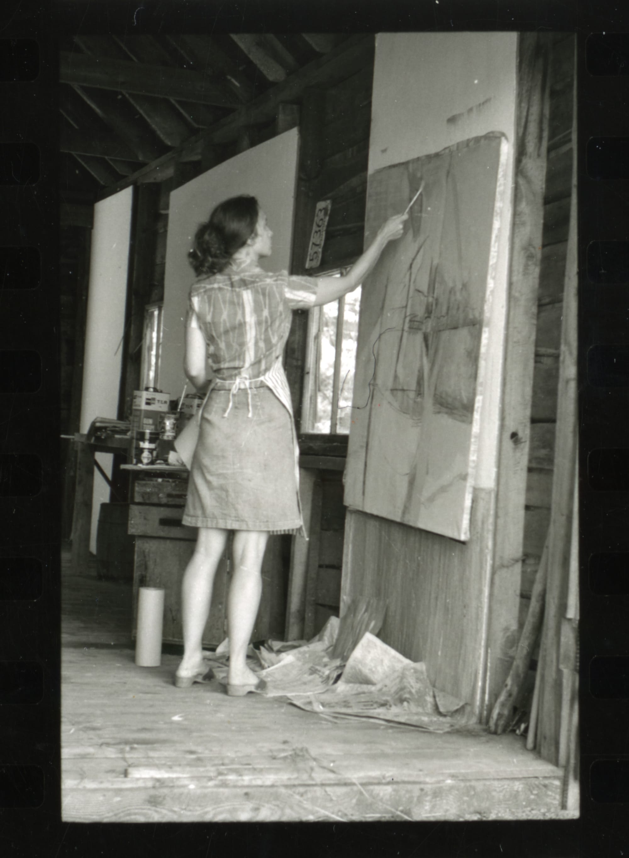 During her tumultuous marriage with de Kooning, Elaine de Kooning had stayed independent in her stylistic development. She had a sharp eye and was one of the best art critics of her time. After Mason married Kahn in 1957, Elaine continued to be a familiar visitor. She was very supportive of both their practices, and they were of hers as well. They would exchange works; Wolf and Elaine would pose for each other.