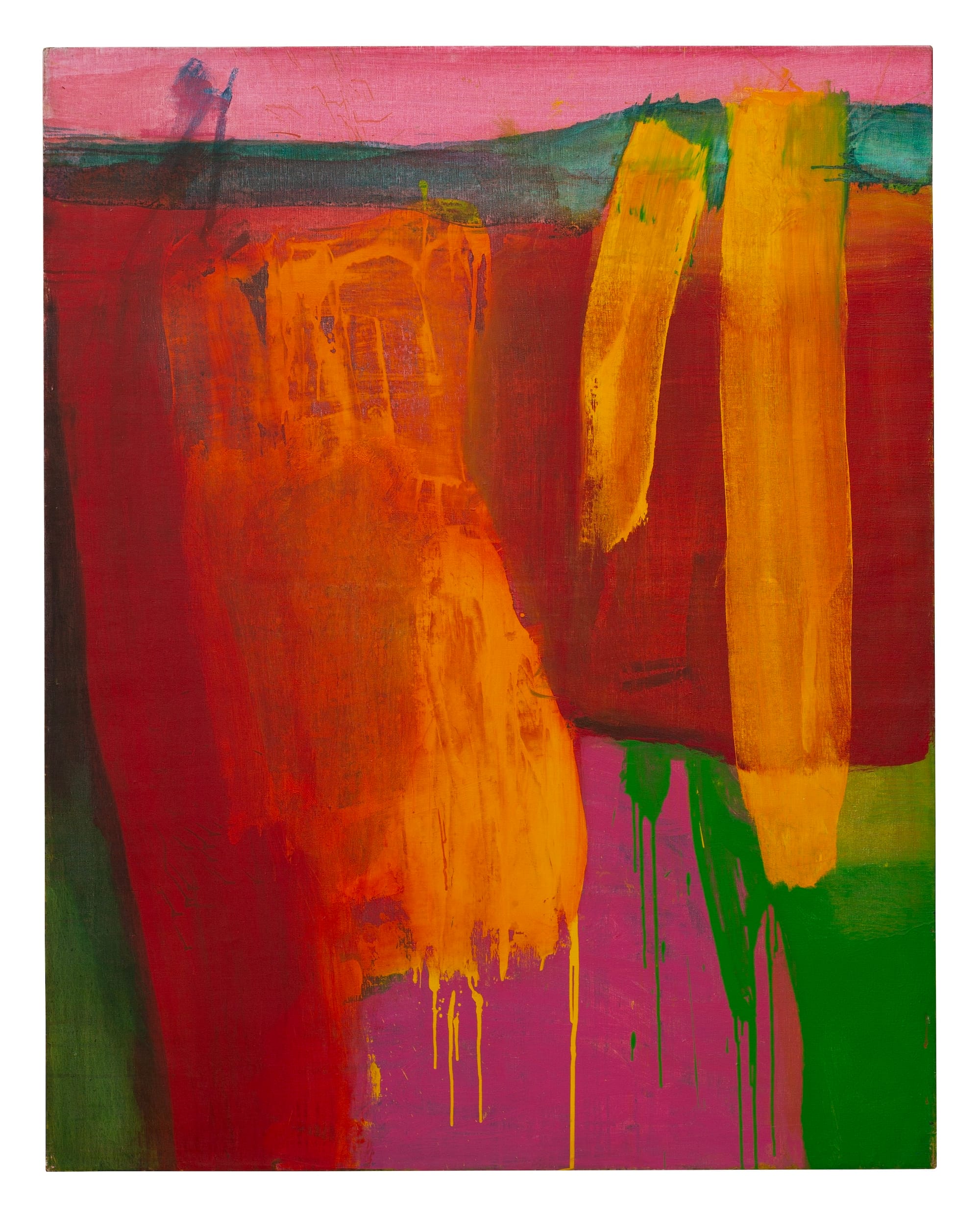 Mason, like Cage, cultivated the art of letting go. In 1975, in discussing her creative process with Lona Foote, Mason said: “I like to feel that I work on a painting until something magical happens. Until it becomes something outside of myself, a new vision . . . You lose a kind of control, but you gain something else.” In her best pieces, nothing comes between her and her canvas. The work appears akin to a natural phenomenon, activated by forces that are beyond the artist. This is how Mason perceived it herself: “I feel as if I’m a conduit, but of what I don’t know until the paintings are finished.” She initiated and followed. She would say, “Not knowing is my mantra.”