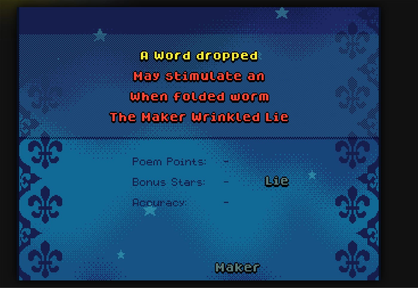 The game instructs players to recreate the poet’s starkish, rhyming prose by shooting at moving words from a fixed point, with hilarious results.