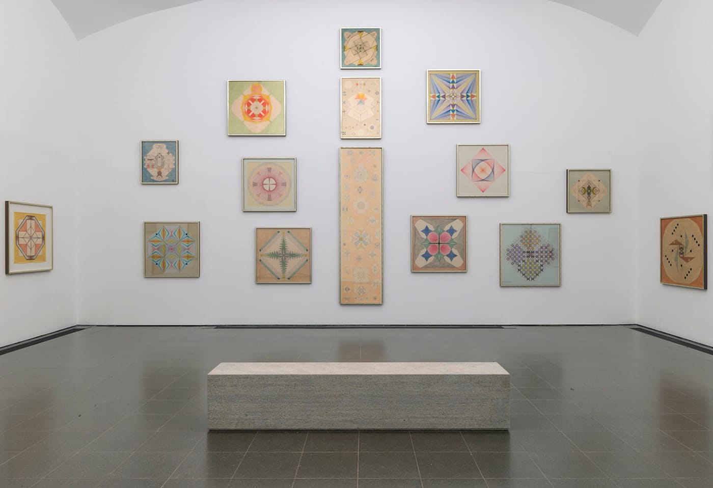 The exhibition, Visionary Drawings, tells the story of Emma Kunz (1892–1963), a Swiss healer and spiritualist. Her works were only exhibited after her death, and she herself believed that her art was destined to be viewed by later generations. In the last few years, her drawings have been shown alongside the works of artists such as Hilma af Klint and Agnes Martin; however, Kunz’s practice does not easily fit into the history of the development of abstraction. Perhaps this is because art in itself was not her primary occupation; she considered it a means for the exploration of the astral plane.