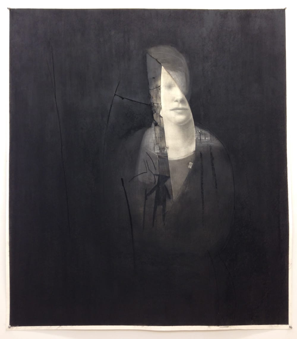 Valentine approaches drawing with the sensuousness and scale that is customarily applied to painting, yet makes sport of the fragility of the paper. His surface lacerations and disruptions unsettle the image to a starkly expressionistic effect without once engaging the stylistic tropes of expressionism (the slashing gesture, the exaggerated mark).