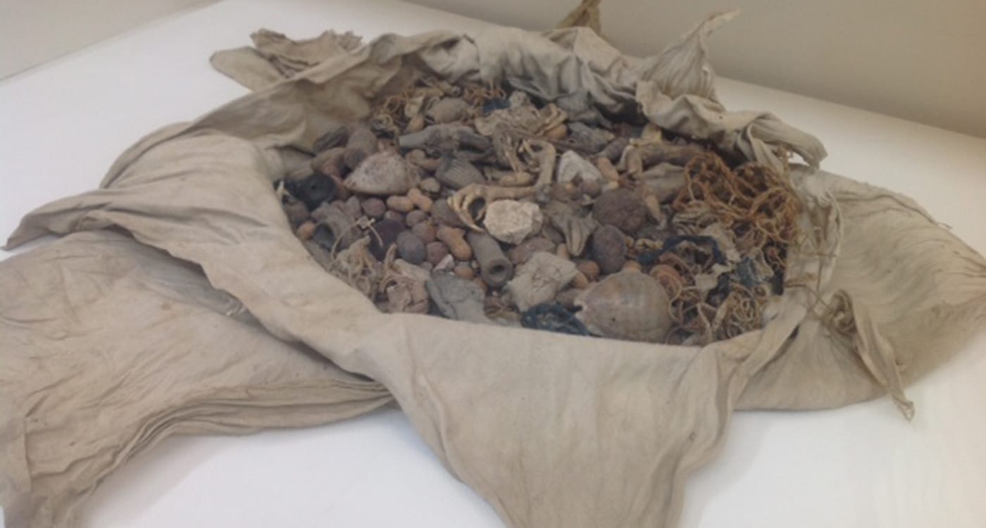 Marvelous mishmash works of great diversity become a means of altering our ideas of what an object is expected to “do.” It is always a pleasure to encounter Man Ray’s “L’Enigme d’Isidore Ducasse” (1920, remade 1972), which consists of a sewing machine wrapped in a blanket and tied with string — a reflection on Comte de Lautréamont’s famous phrase, “beautiful as the accidental encounter, on a dissecting table, of a sewing machine and an umbrella.” But some of the most engaging pieces come from outside the art world. I was mesmerized by the old “Sac magique Nkisi Ma bi ala” from Angola (before 1933) and an anonymous Nkisi Kula magic object from the Congo. They allowed me to imagine being engaged with these makers in ritualistic activities that involve the powers of excess. They generate an extraordinary network of emotional wonder that is achieved by what I think of as the responsibility of re-appropriating our fragile capacity to visualize. Within their magical context, well-known contemporary art, like Louise Bourgeois’s floating “Arch of Hysteria” (2000) and Annette Messager “Mes vœux sous filet” (1997–99) is enriched. They seem to contain as many possibilities of interpretation as the human skull trophy from Borneo — and thus appear more supernatural. Even when we understand the art’s history and context, the associative voodoo confers on them an anti-modern canon of non-causality.