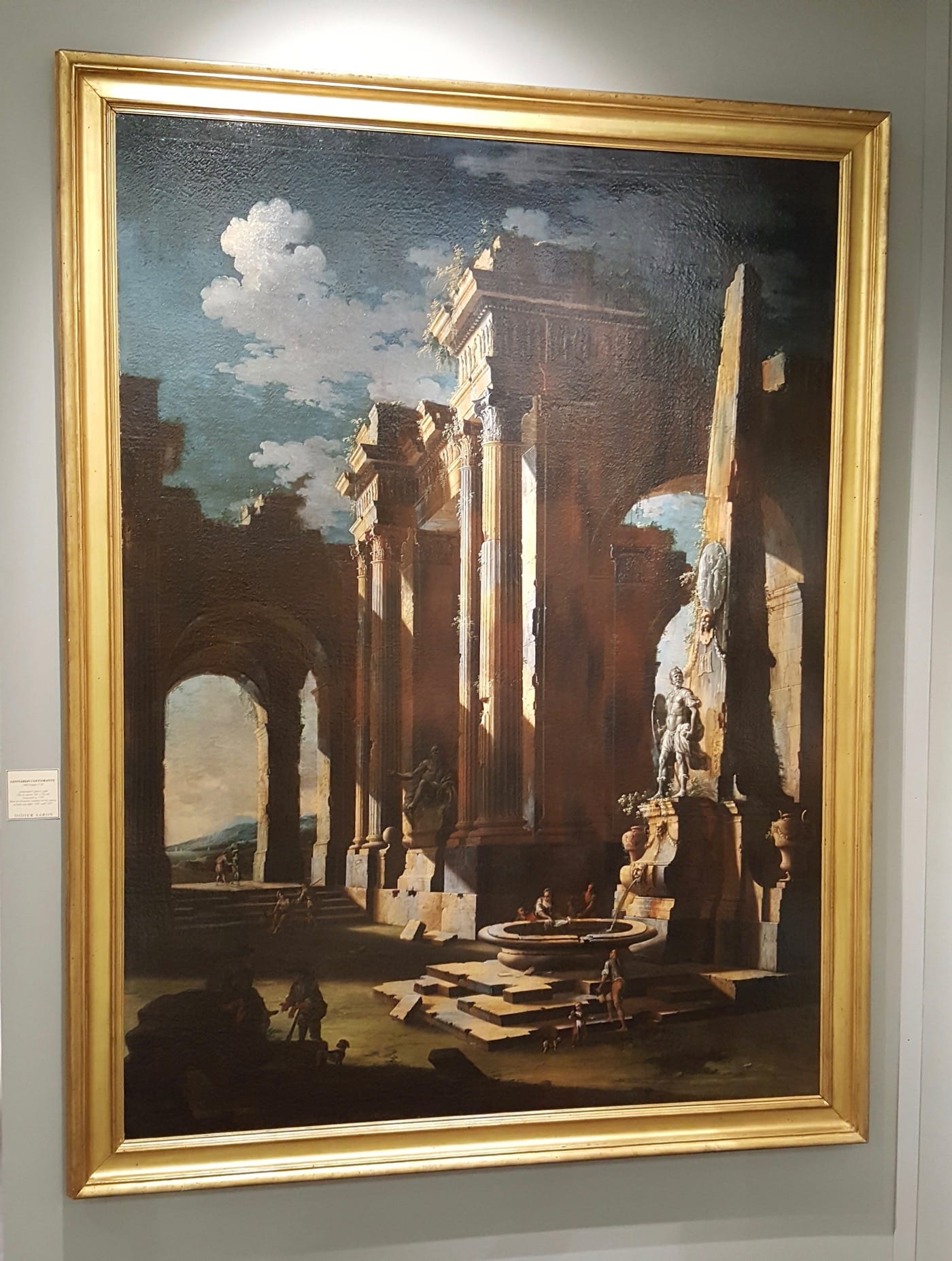 The fair is much more interesting to me when I find the older, pre-modern painting work that succeeds, particularly in the portraiture, in constructing a scene that, while wholly invented, is emotionally convincing. Pieces like “The Head of Medusa” (ca. 1617–18) from the studios of Peter Paul Rubens and Frans Snyders — which shows the cut-off head on the ground with a stunned expression stamped on her features, and the writhing, conglomeration of snakes beginning turn on each other — make the ancient story seem true. They “give to reality to greater permanence of the imagined” as the poetry critic Alfred Alvarez said of Sylvia Plath’s last collection. Leonardo Coccorante’s “Architectural Capricci, a pair” (1730) is a landscape that depicts a set of ruins; while ramshackle, they still look glorious, and it helps that the painting is so large I felt that I could walk into it.