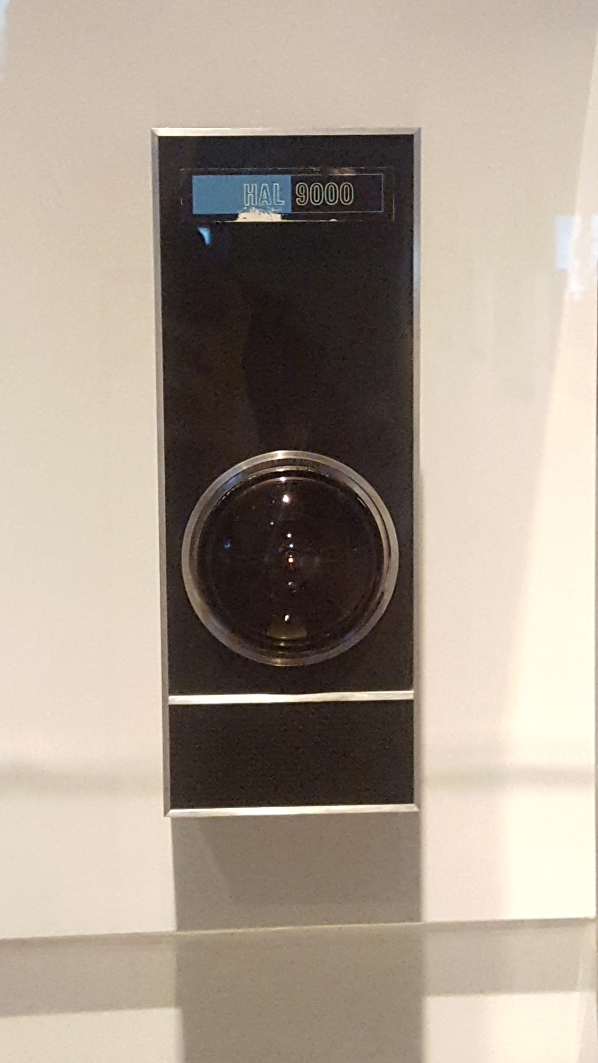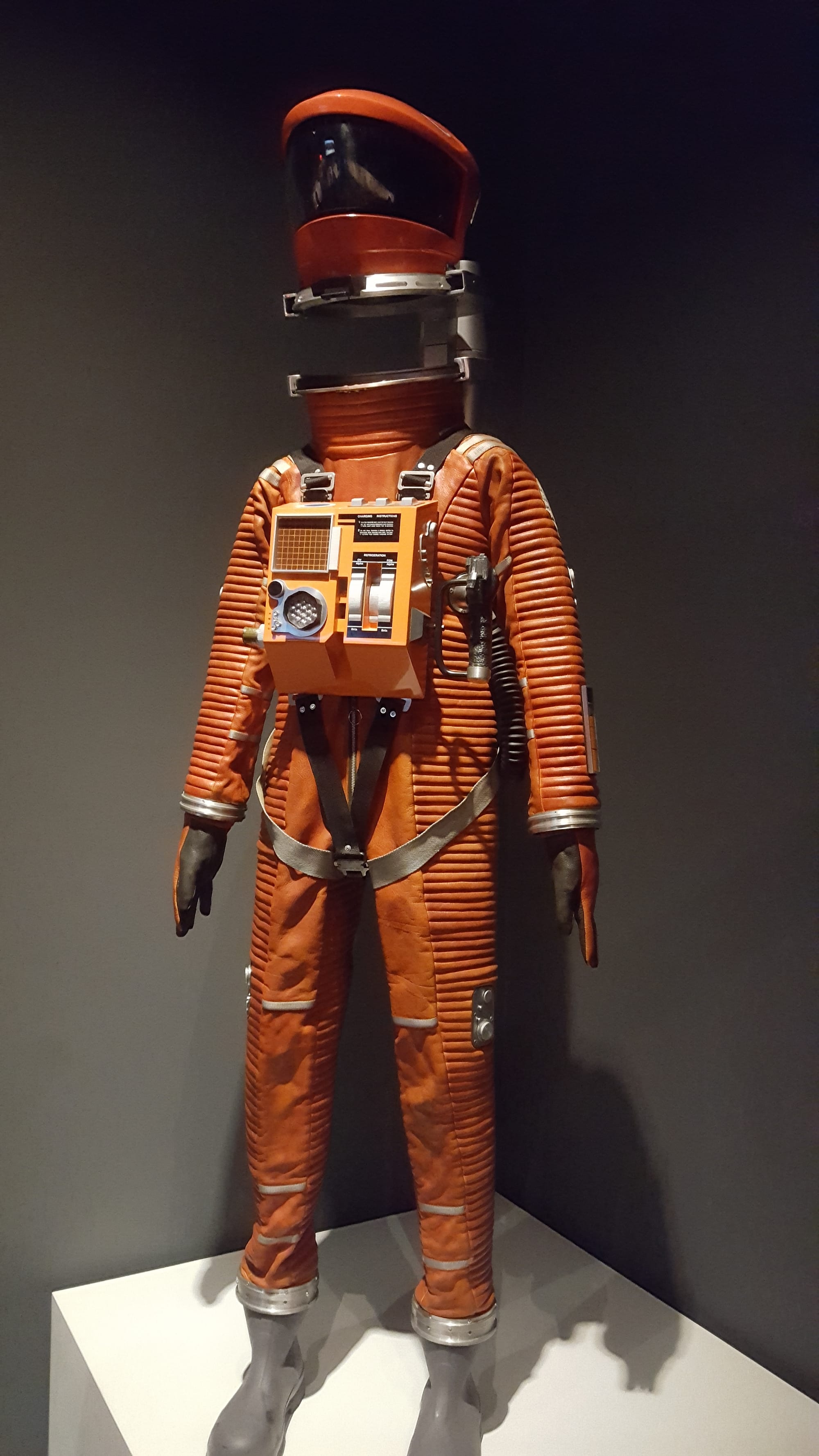 So there’s a thrill to being able to look up close at the costumes, to see the fur work on a bodysuit that a performer wore to play a pre-evolved human. My favorite part was discerning the detail in the Pan Am logo on a stewardess cap, something you likely can’t see in the film itself but which makes the product all the more convincing because they added it, even though no one would consciously recognize it. Even reproductions of props in lieu of originals, such as the “eye” of the sinister computer HAL 9000, can induce a chill.