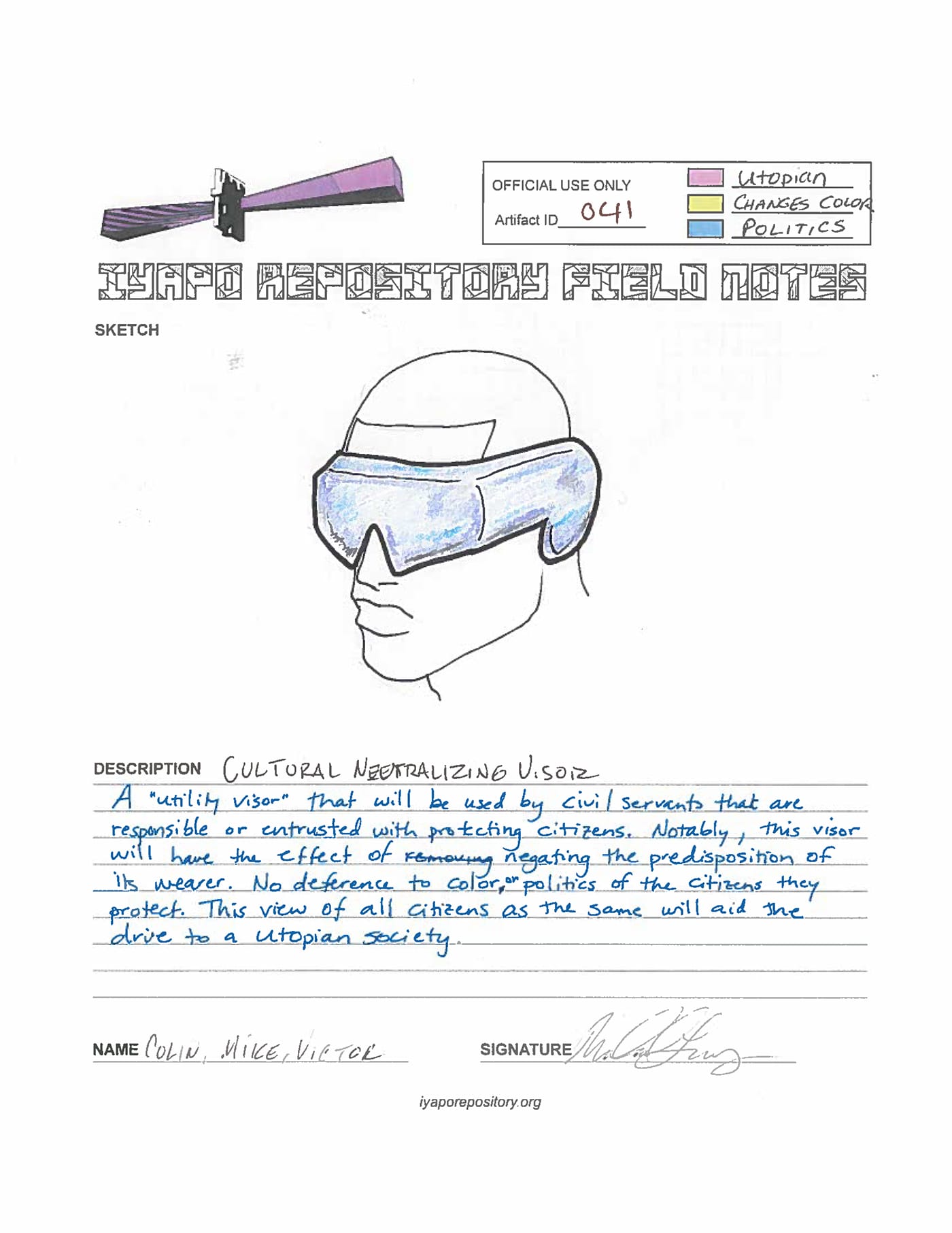 In this show, I think of works by Salome Asega and Ayodamola Okunseinde, who are the creators of the Iyapo Repository, an ongoing archive of collectively conceived Afrofuturist technology. They asked that MOCAM donate an acre of land to the group to become a permanent location in space for their repository. This way of using institutional frames in order to insert something fictitious into the real public narrative is to me a really potent strategy; it does something more than representation. They use a participatory game model to come up with these technologies, so the process and the aesthetic are really playful. But they also don’t shy away from real political trauma and injustice. For example, one of the technological innovations is a futuristic visor for law enforcement that would use VR to make everyone they encounter look the same. Now, I don’t know if this would really solve the issue of racial profiling, but putting out an idea like that, with all of its problematics, helps us come to new ways of thinking by actually imagining and playing out the results of the technology in our minds.