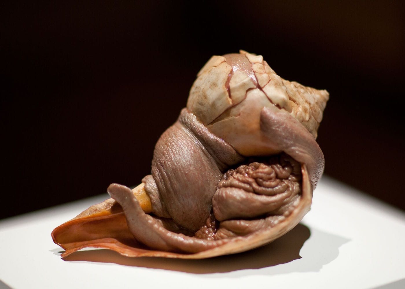 There is also beauty in how Swenson replicates textures that appear to glisten, rot, or warp. Viewers must overcome their initial shock or repulsion to the visceral subject matter in order to go in for a closer look and experience the fine details of the work. What artists Ron Mueck and Duane Hanson have achieved with hyperrealistic sculptures of people in repose or in decay, Swenson accomplishes for the animal kingdom. His process takes months, often years.