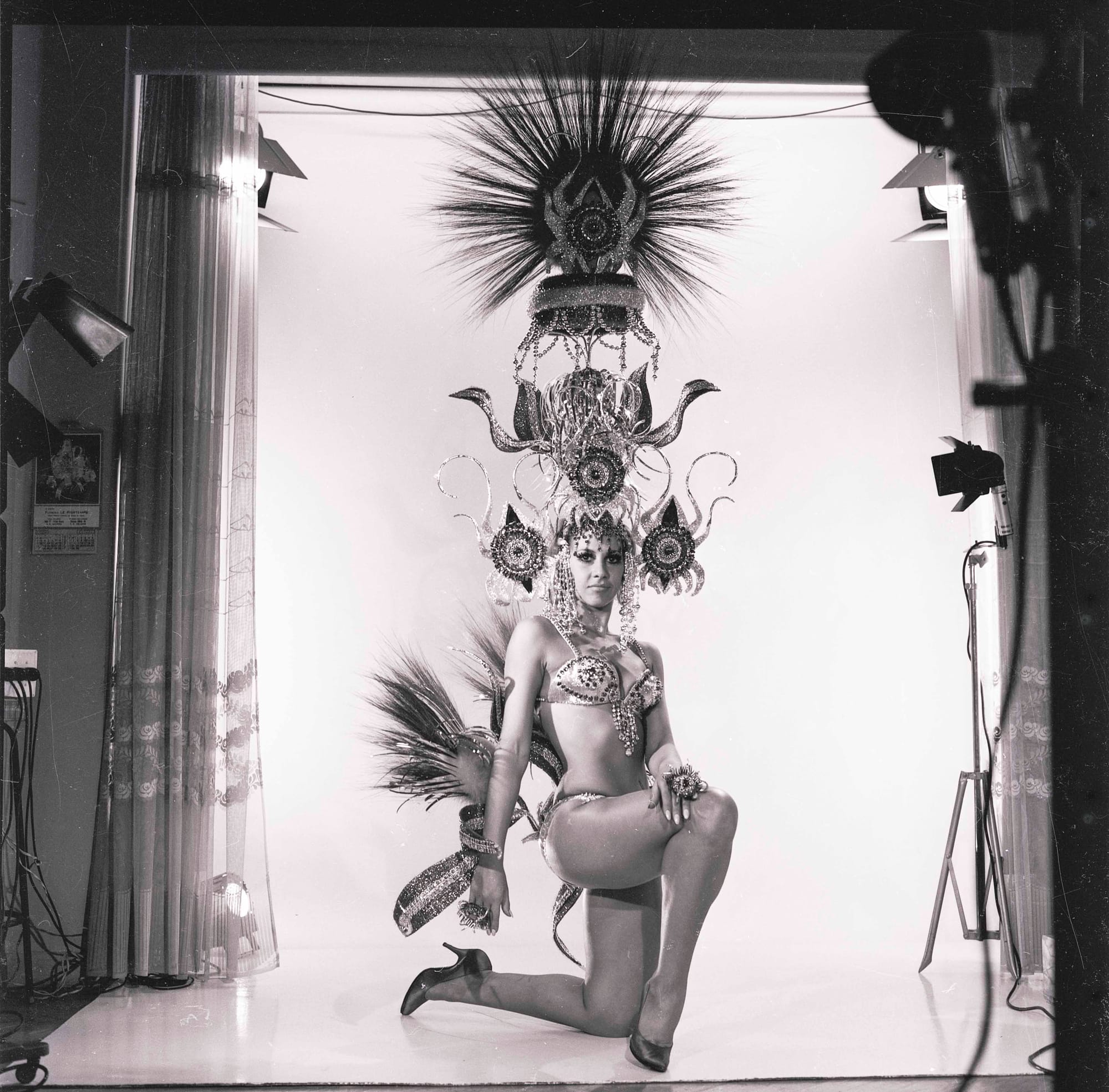 From 1958 to 2009, Estudio Luisita — the photographic studio run by sisters Graciela (“Chela”) and Luisa (“Luisita”) Escarria — produced iconic images of the stars of Buenos Aires show business, and the Maipo theater’s brand of teatro de revista, or revue. Curated by Lara Marmor, Bruno Dubner, and Ariel Authier, the exhibition Luz de noche — which translates to “Night light” in English — on view at Teatro San Martín’s Fotogalería, reveals two sides of Estudio Luisita’s photographs: the nightlife on Avenida Corrientes and the Escarria sisters’ home studio on the avenue, between the arresting illusion of the revista shows and Luisita and Chela’s self-effacing and meticulous work in achieving it. In contrast to the Maipo theater’s vast billboards, the photographs presented here allow the audience to see the artifice up close.
