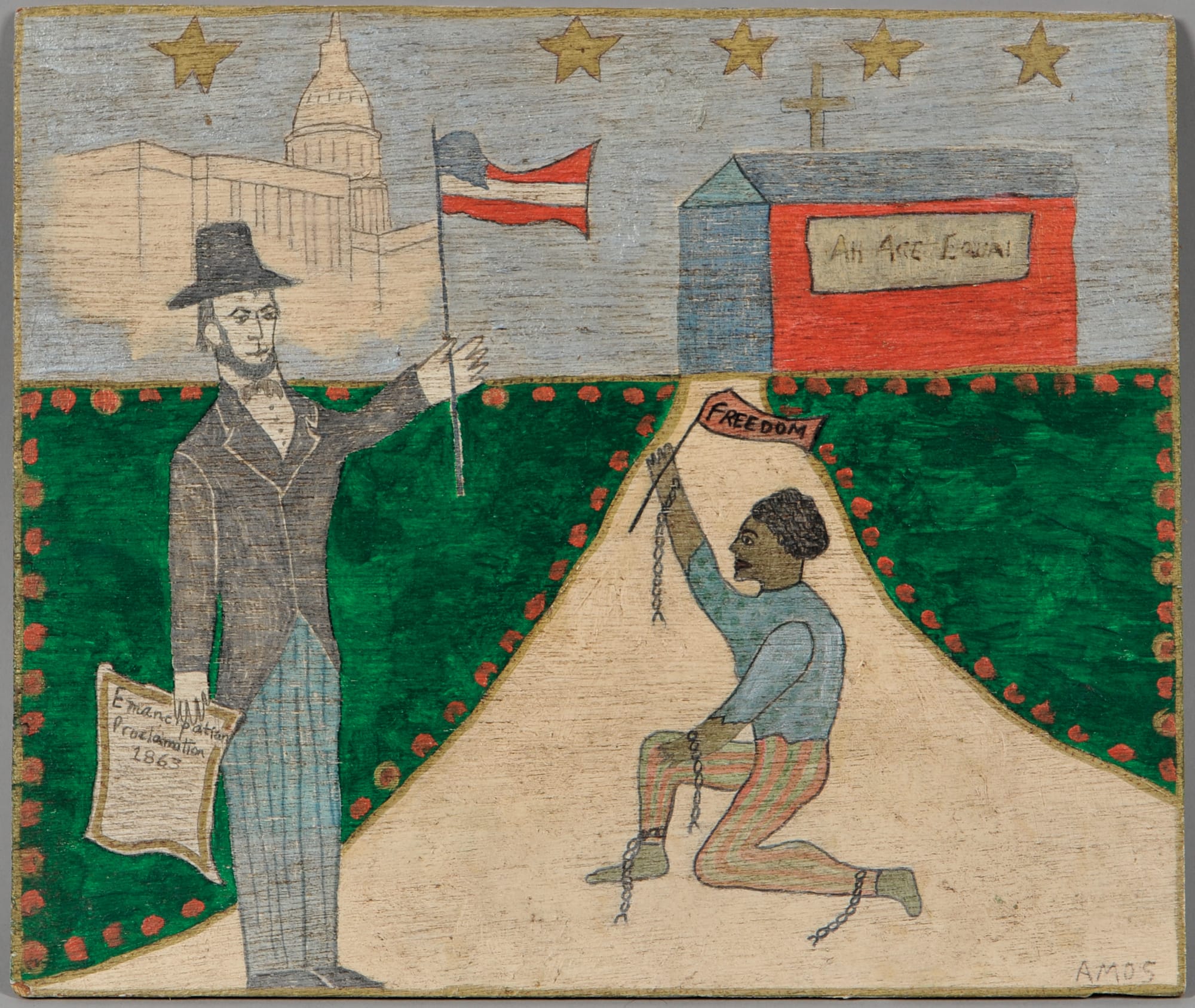 Folk art oil on board of President Lincoln and a freed slave, 20th century (image courtesy Skinner Auctioneers)
