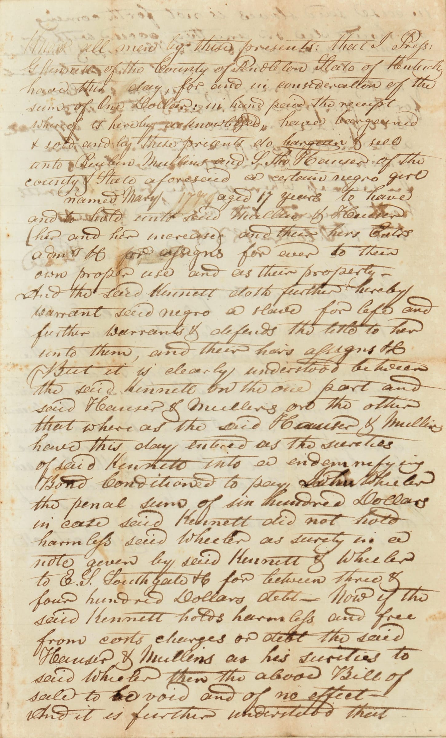 Framed bill of sale for a “Negro girl Mary” (image courtesy Skinner Auctioneers)