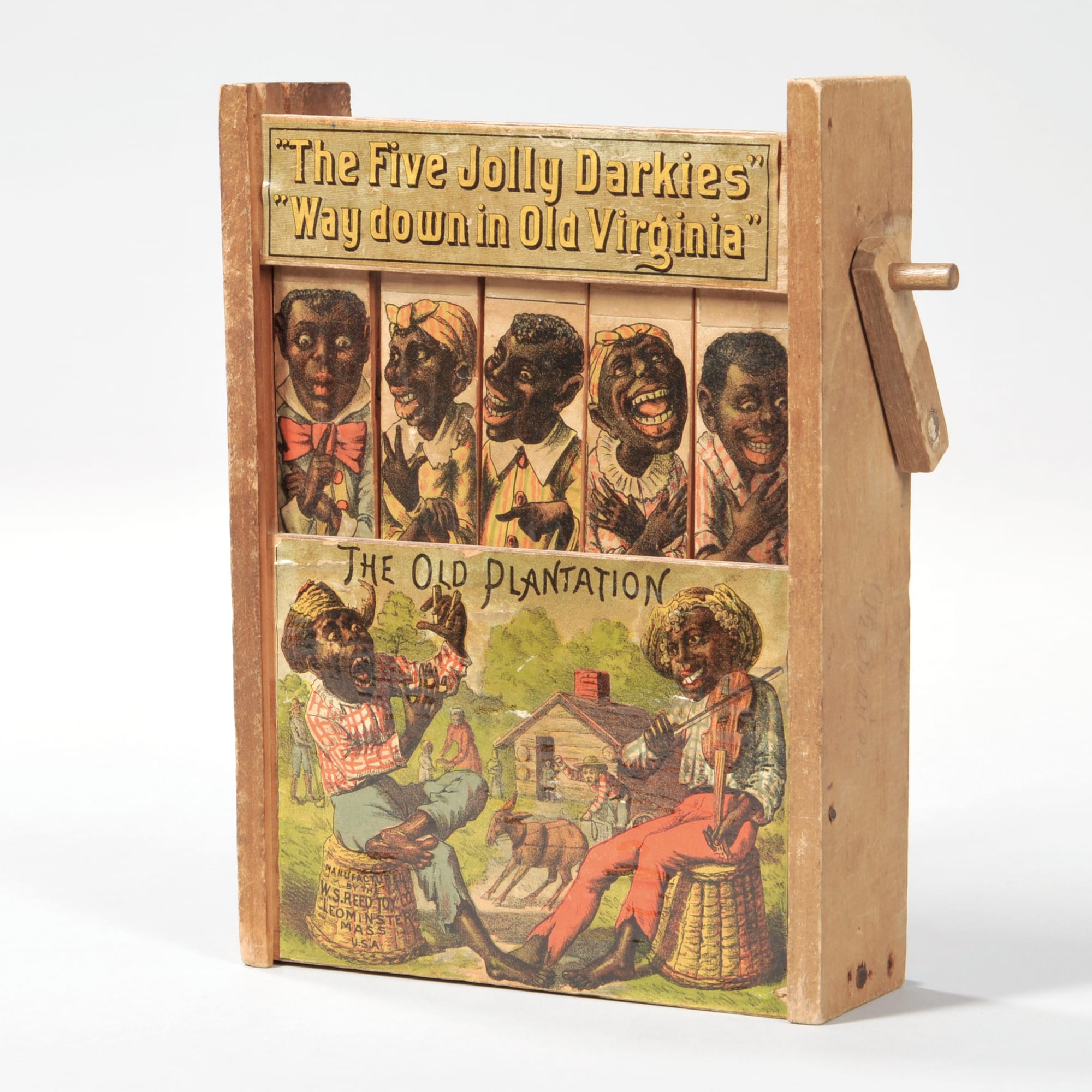 W. S. Reed, “The Five Jolly Darkies Way Down in Old Virginia,” c. 1880-1900. Lithographed paper on wood crank toy (image courtesy Skinner Auctioneers)