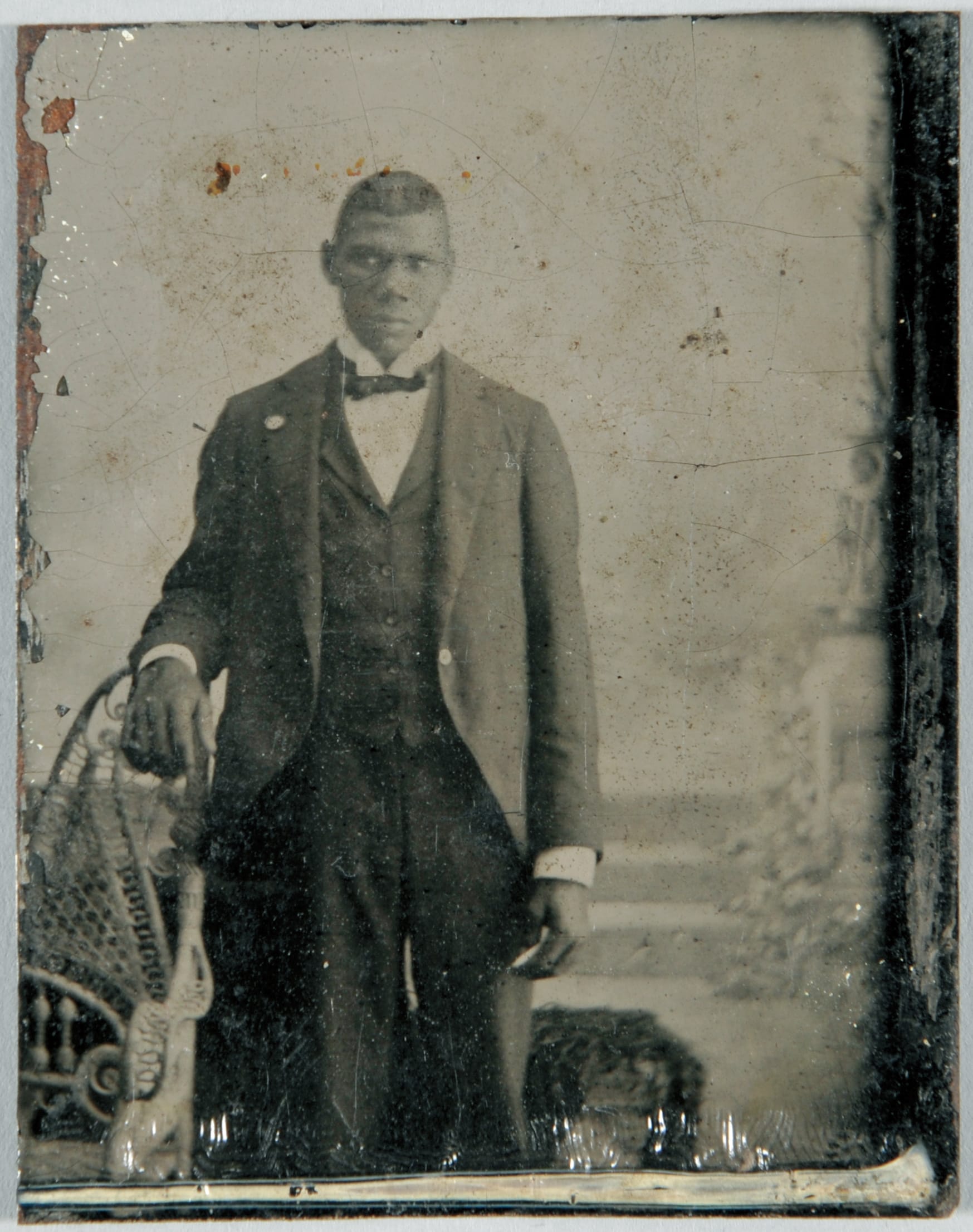 Unframed tintype of Booker T. Washington dressed in a three-piece suit (image courtesy Skinner Auctioneers)
