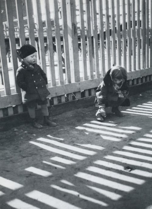 Besnyö’s oeuvre includes many photographs of children. The earliest ones are from 1930 and the latest one included in the exhibition is from 1960. It is hard to know how many of these she took. Both world events and her private life interrupted her photography. Unlike her American counterparts, Besnyö left her native country to broaden her possibilities. While she was able to get out of Berlin before the Nazis took over, she could no longer publish under her own name during the war because she was Jewish (she eventually went underground in the Netherlands and forged passport photographs and identity papers). She made discrete bodies of work, which, superficially at least, seem to have little to do with other groupings within her oeuvre. And yet, despite the interruptions and restrictions she had to endure, she became a modern master.