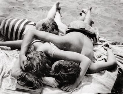 Innocence, the allure of experience, and the desire for knowledge have meshed together into an image that implicates everyone, including the viewer. The entanglement of those looking at the image is what makes the photograph so powerful. The boy sees us looking at the girl lying on her back, whose face remains hidden. The transition from innocence to experience is seldom smooth. In their own way, all the children are stumbling towards the future.
