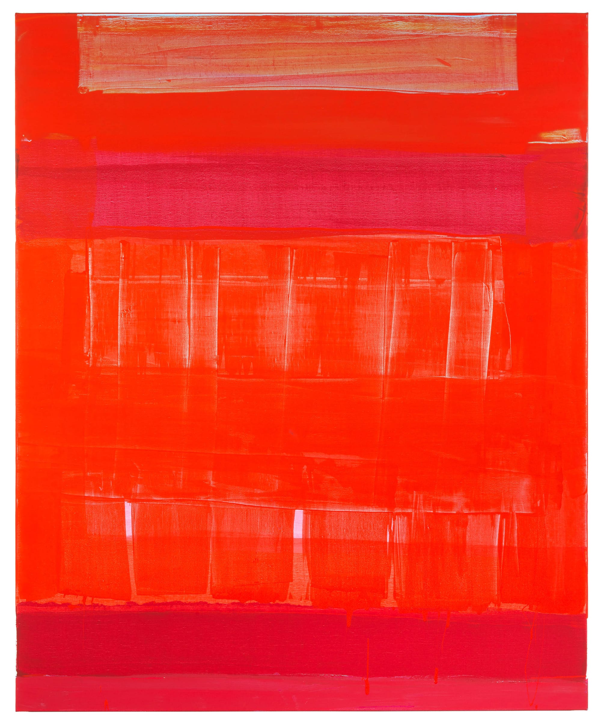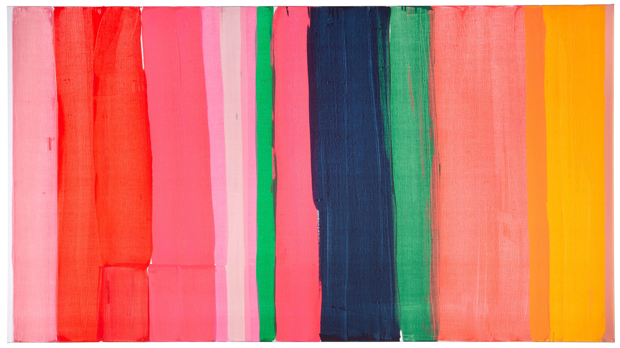As Fugazzi says to Cory in their interview, at the core of an architect’s training is “rigor, pragmatism, and consideration of beauty.” Pragmatism is a concern I have never heard from an abstract painter. To be pragmatic is to be focused on a goal and mostly undeterred by emotional interference. It means getting the job done. Fugazzi’s work suggests he’s aware that he has a purpose in these paintings. But they do not feel cold or overly technical in their execution. They compel us to look, and look again. I feel that the pinks in “Loom” are still burning my eyes. And I say, bring it on.