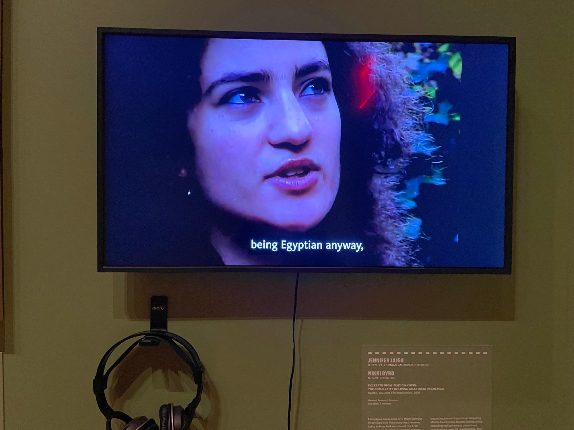 Niyū Yūrk’s most effective work is the short film "In My Own Skin" by Jennifer Jajeh and Nikki Byrd (2001). In it are brief interviews with five Arab women in the US discussing their experiences as immigrants shortly after 9/11. Instead of asserting their existence, they describe being forced to repress it, to prove their Americanism — in effect, to be invisible or White. The videos are available to watch online, which is worth doing. If you’re part of the SWANA diaspora, you’ll likely identify with them, especially if you were around post-9/11. If not, they offer a window into life within this paradox where invisibility and visibility are two sides of the same coin.