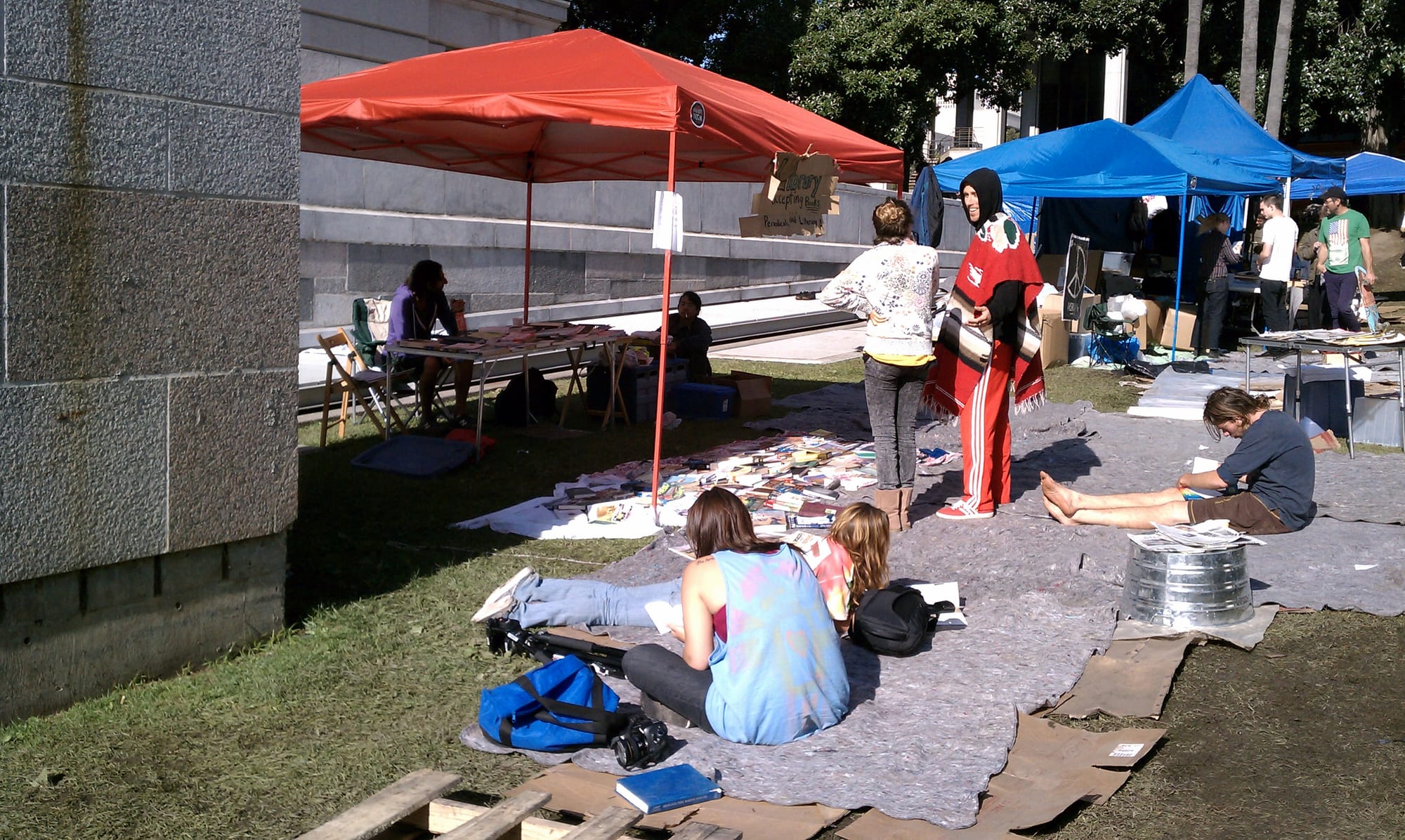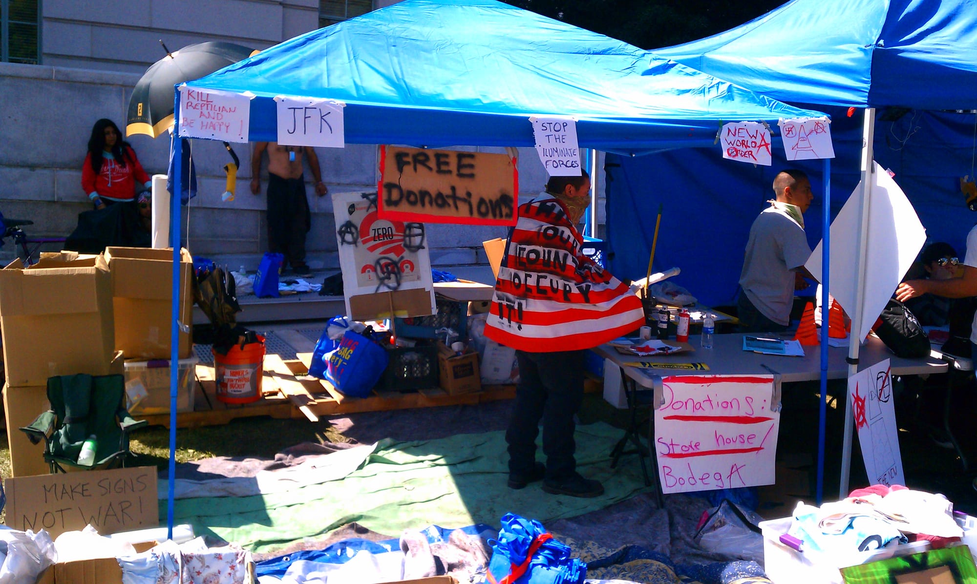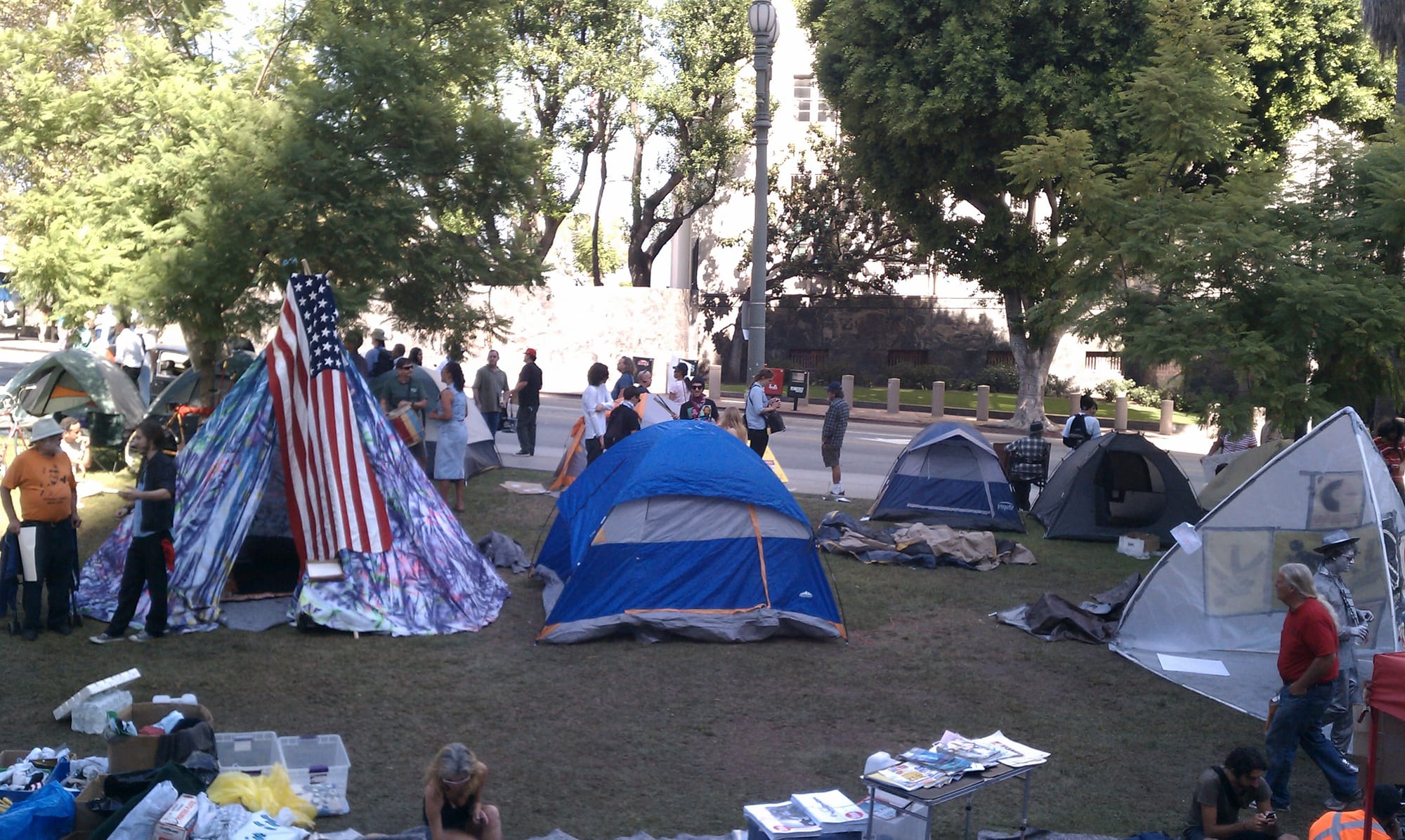 LOS ANGELES — I returned to Occupy LA on Thursday night and discovered double the amount of people since I visited on Tuesday. Tents spanned across the entire span of the north and west lawns, many spilling out onto the sidewalk. In addition to media and first aid, occupiers had set up a lending lib