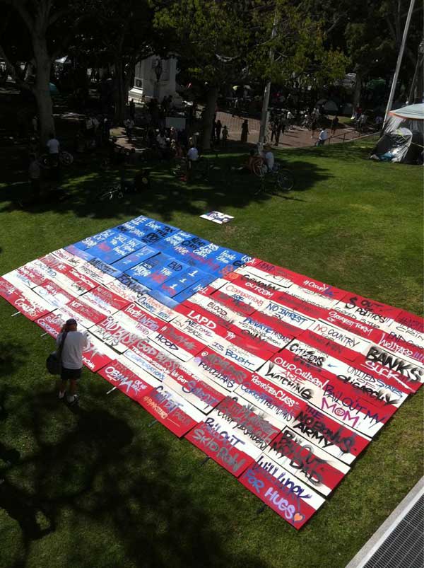 Editor’s note: Today, artist Saber posted this photo on Twitter with the title “Occupy LA Flag”: