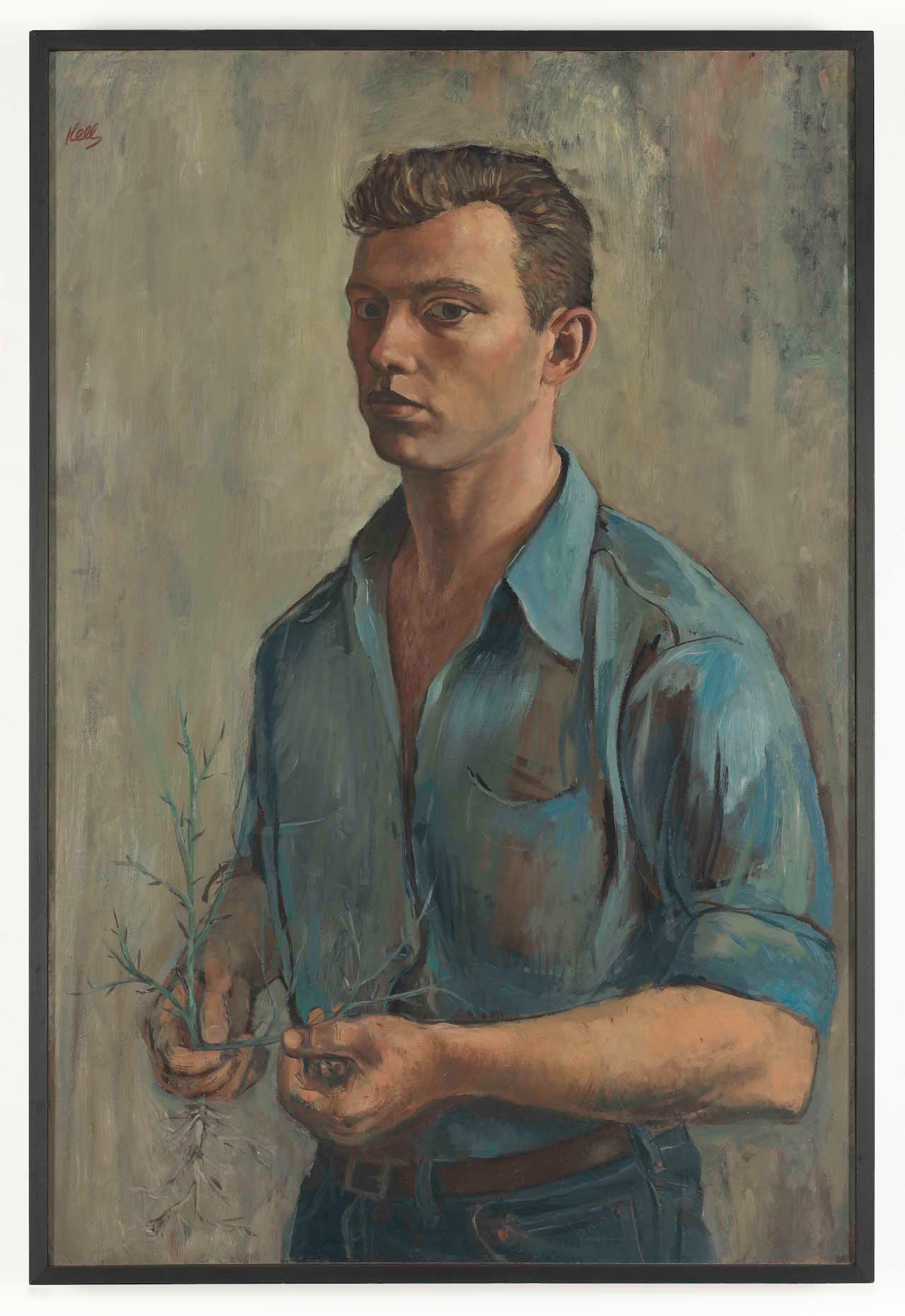 In addition to its copious biographical details — Bois consulted regularly with Kelly — the catalogue offers reproductions of rarely seen student works — extensive drawings and studies along with somber portraits and moody landscapes enlivened with European avant-garde conceits; Paul Gauguin and Max Beckmann are named as foundational influences.