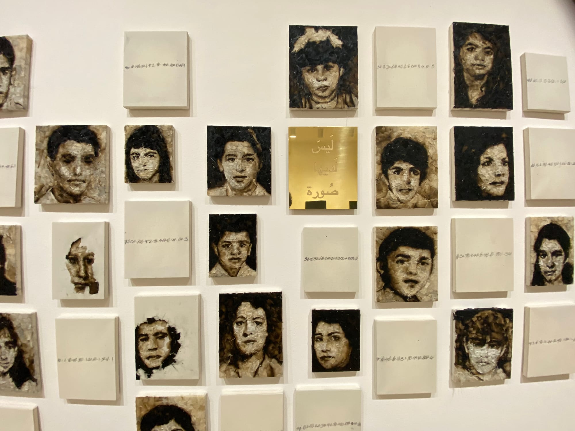Detail of Hanaa Malallah’s installation “She/He Has No Picture” (2019) (all photos by the author for Hyperallergic, unless otherwise stated)