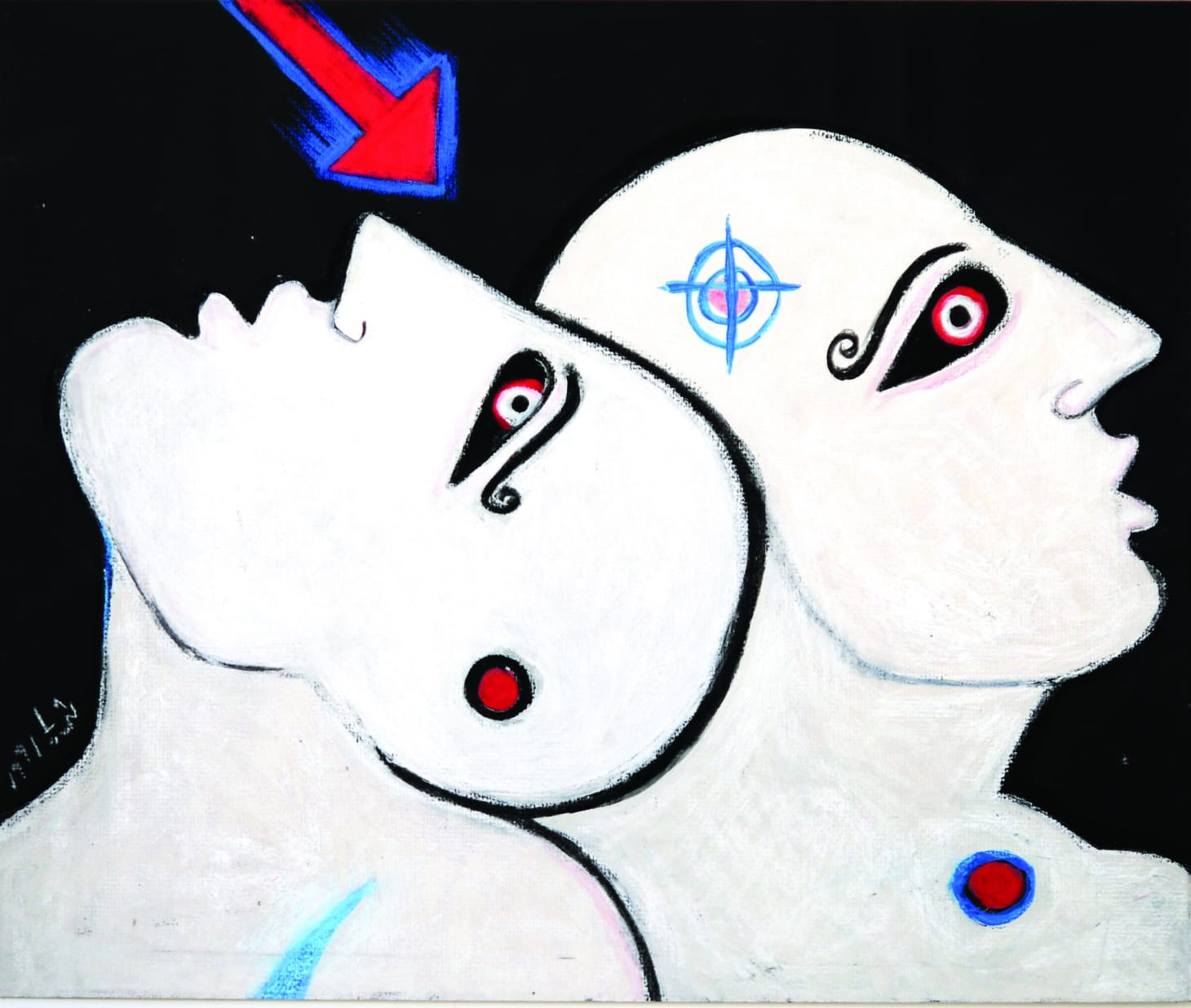 Dia al-Azzawi, “Mission of Destruction” (2004-2007), acrylic on paper mounted on canvas