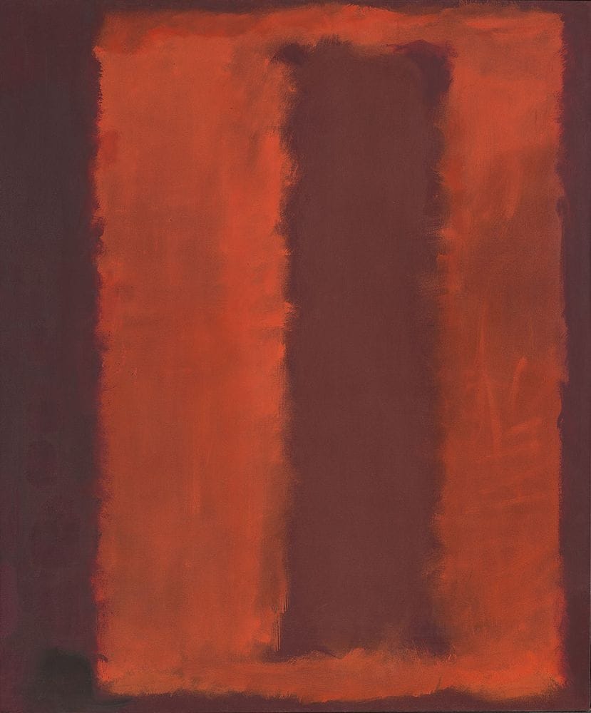 Finally, in his late abstractions the color field structures sometimes darken, sometimes, as in “No. 3” (1967), almost becoming monochromes. Looking at this body of work, it’s a mystery how, and why, Rothko made his dramatic breakthrough into abstraction. It is also difficult to understand why he often abandoned the glowing colors of his earlier abstract pictures for the much more austere, visually simplified late structures.