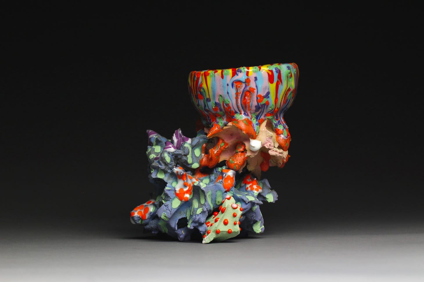 Hoi Chang has named her sculptures “Nuggang,” an invented term based on a Korean word that represents “a sigh or an exhale; an unspoken mode of self-expression which arises out of frustration, turmoil or failure.” She sees her bright, textured ceramics as “unique emotional scenes.”