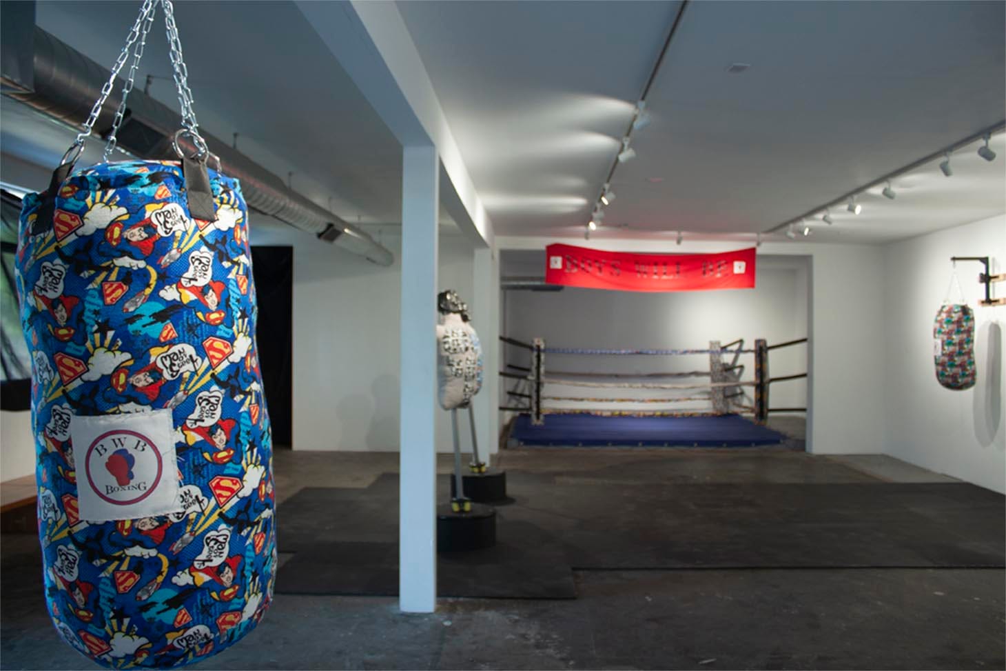 As Jory Harms explained over email, his thesis project, Boy Will Be, examines “the concept of masculinity within the American culture.” He elaborated, “Using the backdrop of a boxing gym as the set for the performance, I demonstrate that men are emotionally capable of displaying affection towards other men despite our society’s demand they do the opposite.”