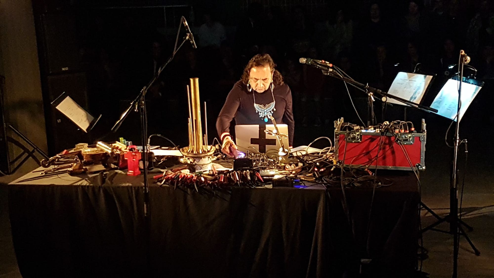 This weekend, Postcommodity members Cristóbal Martínez and Kade L. Twist will perform alongside composer Guillermo Galindo, another artist whose work incorporates Indigenous knowledge and practices. As part of their month-long residency at 18th Street Arts Center, the artists are working with community members of Santa Monica’s Pico District, a historically Black and Latinx neighborhood facing gentrification, to produce a sound-based artwork of local oral histories and contested issues within the community.