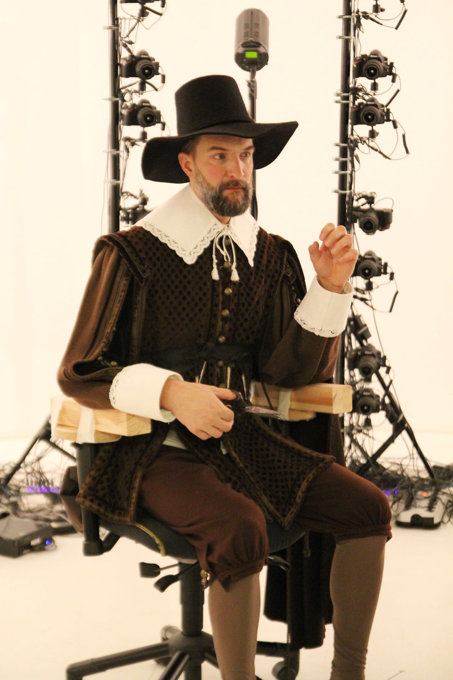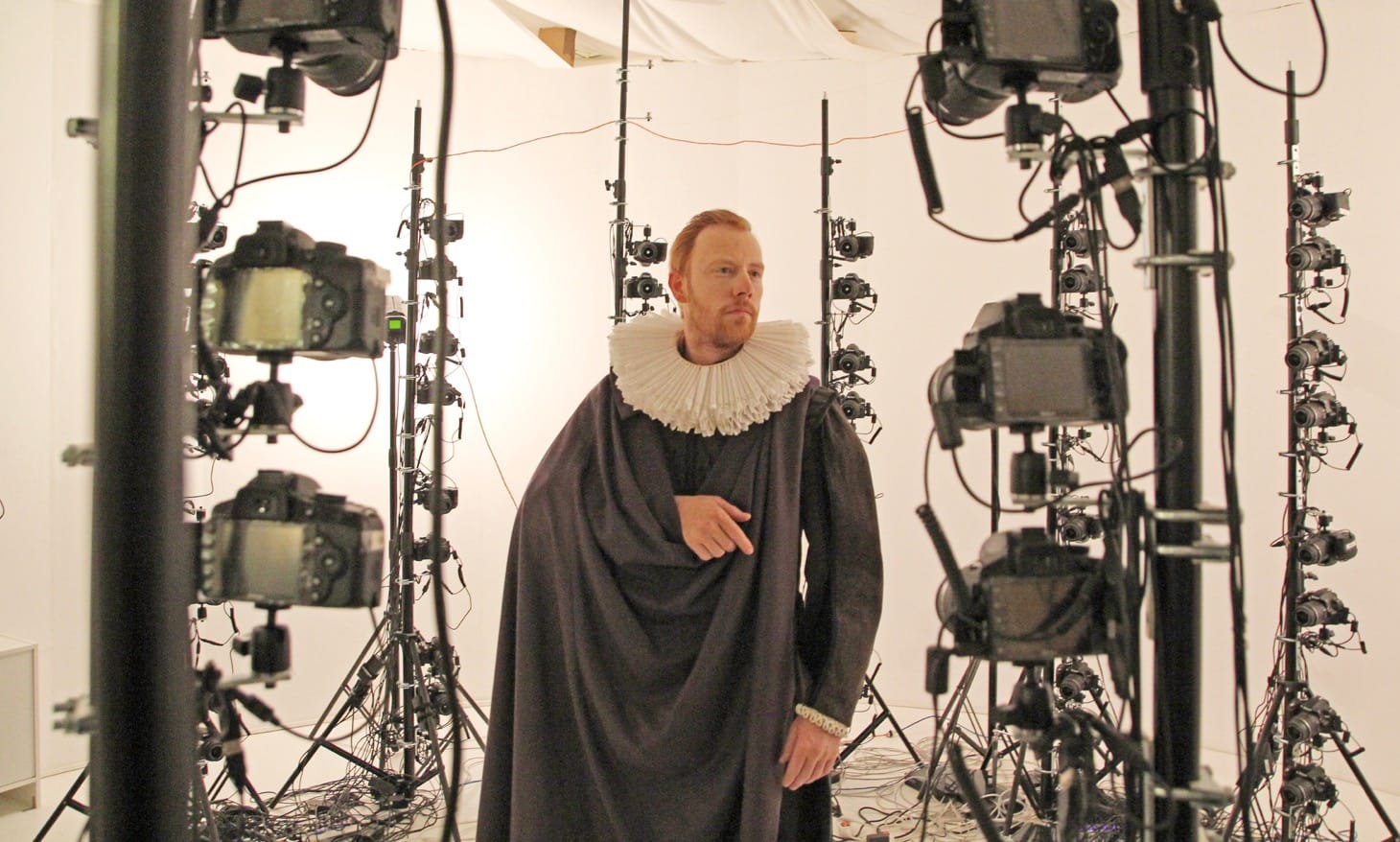 I experienced this right outside the Mauritshuis museum in Amsterdam, being assisted by a man who hands me an iPad and some headphones and allows me to step into the visual adventure. The painting I wandered through was “The Anatomy Lesson of Dr Nicolaes Tulp” (1632). The app that allows me to treat it like a three-dimensional space is called Rembrandt Reality. It was developed by Capitola for release this year to celebrate the 350-year anniversary of the enormously famous Dutch painter’s death — a year which has been marketed with the theme “Rembrandt and the Golden Age.” The app exploits the technological innovation of augmented reality using holographic projections to essentially creating a portal into what was a two-dimensional space that expands into a third dimension that can be visually explored. The app allows virtual objects to be projected and placed into a scheme that visually reads like the physical world, so that as I step on cobblestones, I also step inside the space that’s depicted on the iPad screen. It was created by using real world lookalikes dressed in 17th-century outfits who were scanned with a 3D scanner made up of 600 reflex cameras. And the original theatre in the Waag where Dr. Tulp publicly taught his anatomy lesson was also captured with a 3D scanner.