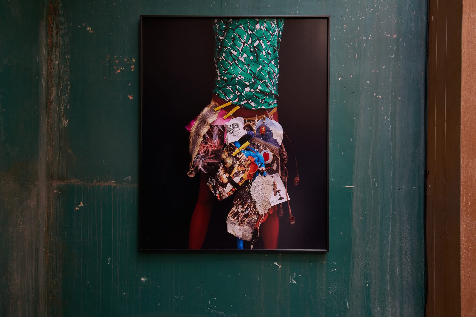 One such building is the Cotton Exchange in the Business District, a nondescript mid-century structure that replaced the city’s previous exchange, built in the early 1800s. The accompanying guide suggests a number of trails — walking routes themed around elements drawn from the overall curatorial concept — that visitors can use as entry points to the biennial. The Cotton Exchange is one of the stops along the “Porosity” trail, with Xaviera Simmons among the three artists whose work is exhibited in the green tiled basement. Both of her photographic series Sundown (2018-ongoing) and Index (2011-ongoing) have a tactile quality to them, layered in meaning as well as appearance. In Index, the female subject of each picture has her skirt completely raised, the patterned fabric obscuring her upper body. A montage of images, objects and archival clippings is held together with clothes pegs underneath her skirt. Each image is heavy with the weight of many lifetimes of accumulated memories, an inheritance that is equally joyful and burdensome. Alongside the hung photographs, Simmons displays three film works, one of which lists the names of slave owners and the number of enslaved people in their possession. In this former site for merchants to exchange commodities, Simmons makes visible the connection between monetary value and human costs of production.