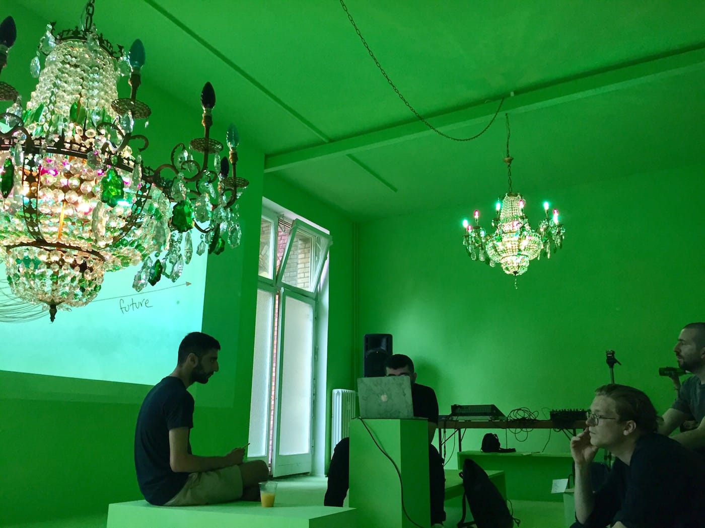 The phrase “born in the purple” is the literal translation of the Greek word Porphyrogennetos, an honorific title from the Byzantine Empire that was given to the emperor’s son or daughter, who was born in a special chamber called a Porphyra. As part of the exhibition, Vert encourages guests to join The Polyphora Club, a discursive, open space within a room that is the largest installation in the show. The Polyphora Club invites international thinkers, artists, curators, and researchers — like Turkish activist and writer Defne Koryürek, Doctor of European Ethnology Dr. Jonas Tinius, and New York–based artist, curator, and critic Mohammad Salemy — to share and discuss urgent political and philosophical questions that are not only relevant to Turkish sociopolitical complexities, but have become global to the point of complete abstraction and intricacy. Lectures, conversations, symposia, video screenings, and open conversations take place once or twice a week, and during these events, delicious Turkish food is shared. Presented by Australian, Berlin-based cook and artist Denise Palma Ferrante, these traditional Istanbulian recipes extend the theme of the show into the culinary sphere, reflecting Mediterranean and Middle Eastern influences.