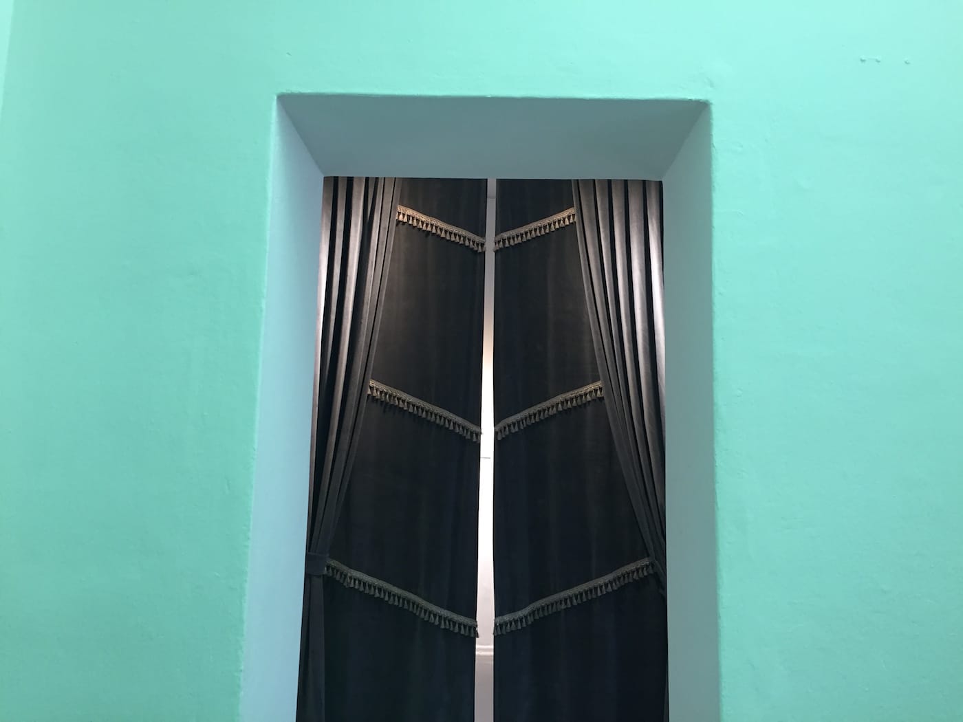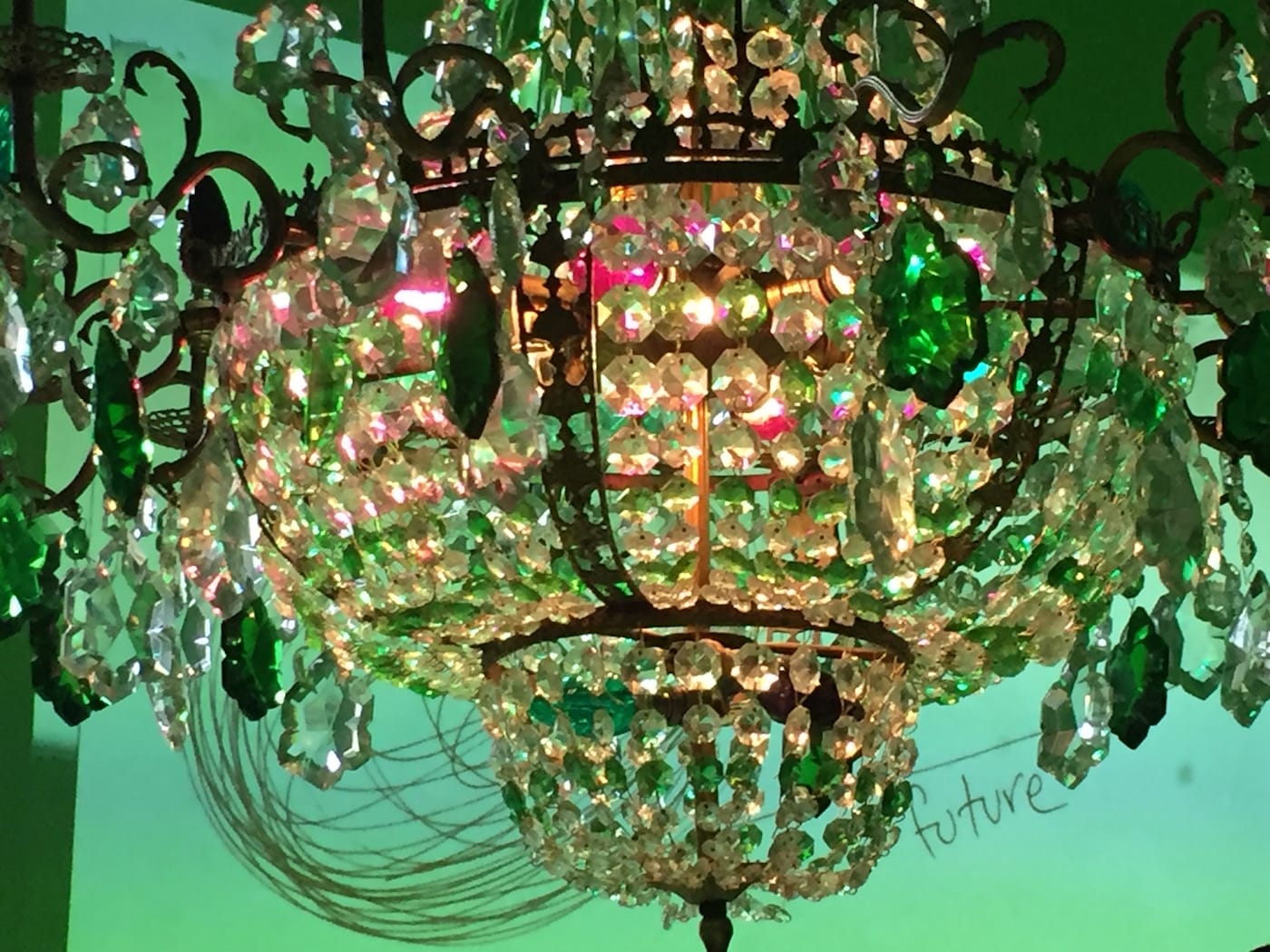 BERLIN — Born in the Purple, currently on view at Kunstraum Kreuzberg/Bethanien, is an exhibition by Berlin and Istanbul–based artist Viron Erol Vert. The show unfolds through many different rooms, creating a bizarre ambiance reminiscent of a family home where patterns, everyday objects, photographs, books, and melodies are collaged into large-scale installations. Shoes must be taken off before entering the first room, where viewers walk through carpeted floors and Turkish rugs lit by shiny, ostentatious chandeliers, while fragments of Nina Simone’s “Strange Fruit” emanate from another room.