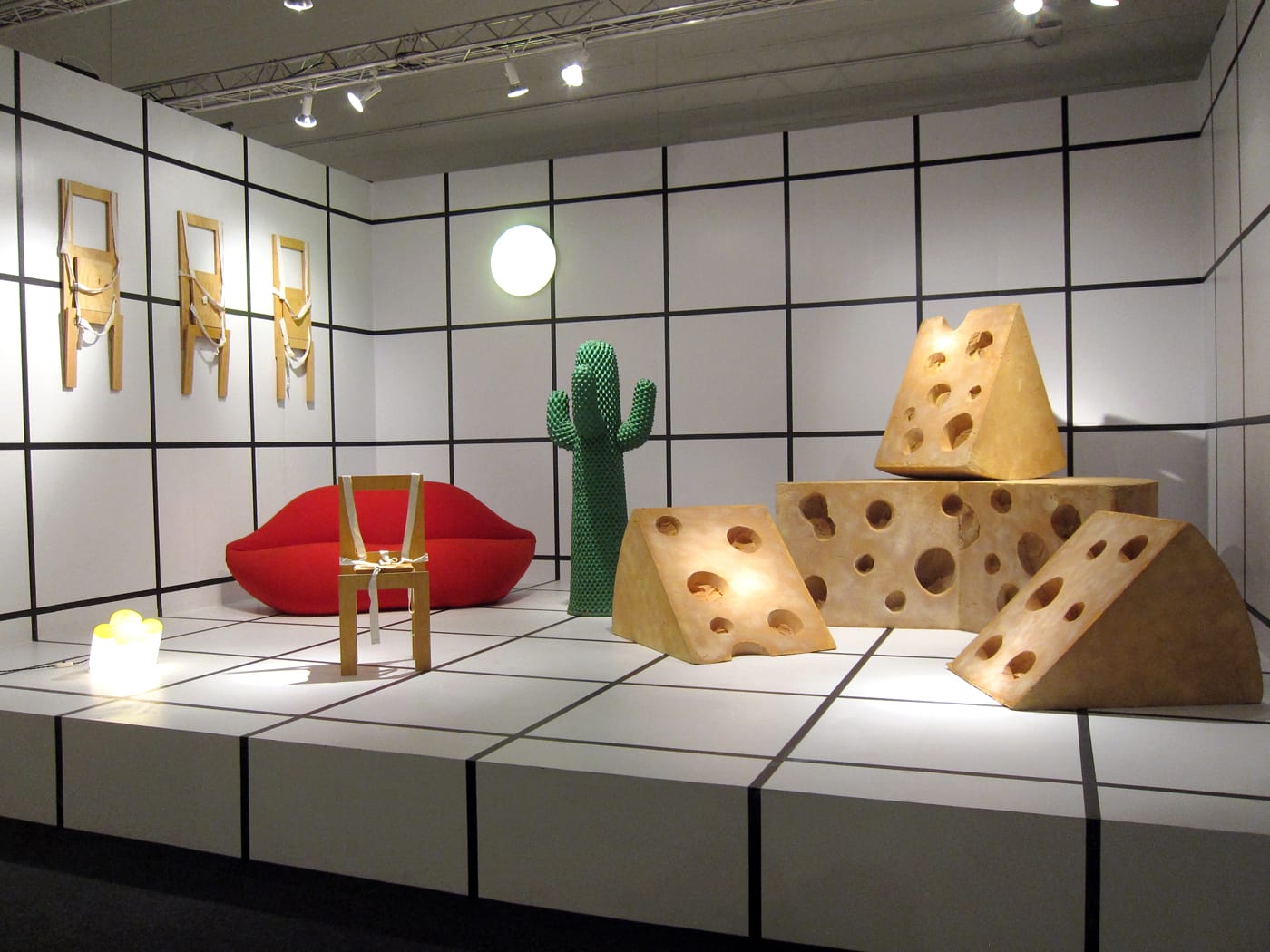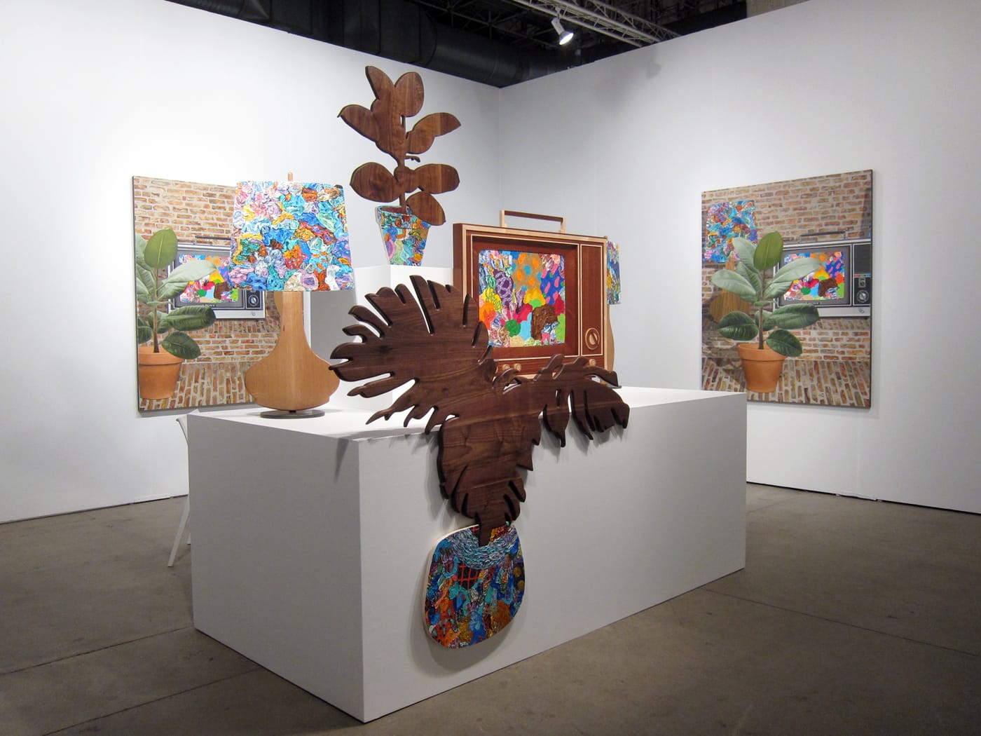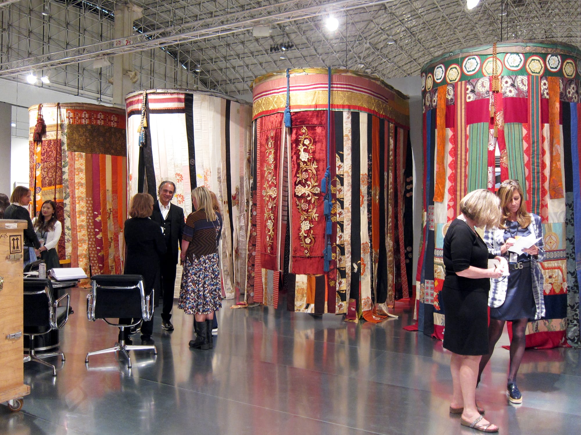 A number of standout booths are similarly transportive in how they determinedly shed their white walls for zanier alternatives. Taking the cake for the strangest is R & Company, who presents a delightful show of Italian Radical Design from the 1960s and ’70s. The eye-catching, grid-patterned stage feels like a three-dimensional, blown up Surrealist painting (or an emoji wonderland), where coatracks resembling cacti and the famous, lippy “Marilyn Bocca Sofa” are accompanied by giant blocks of cheese (Swiss). Galerie Gmurzynska, too, seems bent on eschewing the typical fair experience despite its show of more predictable works by artists including Yves Klein, Laszlo Maholy-Nagy, and Fernand Léger. At its center are four decadent, cabana-like enclosures sewn from an array of ornate fabrics that each shelters an artwork, like an illicit secret. Designed by Antonio Monfreda, the luxurious tents are meant to offer viewers a private, quiet moment with the works — and as a nice, added touch, scent sacks are sewn into the soft walls to emit soothing fragrances. It’s a mode of encounter that’s memorable for its mystery and pace.