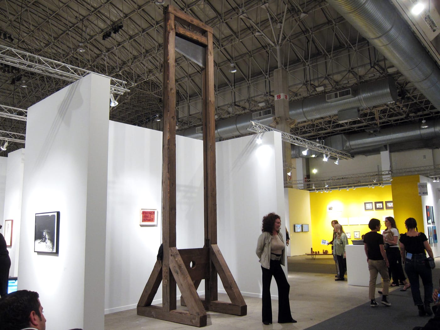 CHICAGO — One of the most startling works at this year’s EXPO Chicago is a lifesize guillotine by Piero Golia, at the top of which is lodged a steely-looking blade, ready to drop. “Untitled (Evil exists where good men do nothing)” fit its surroundings well when installed in an old courtyard two years ago during Basel, but currently confined within Gagosian’s booth at a convention center, it makes for an anachronistic curiosity amid other contemporary works at this major Midwestern showcase.