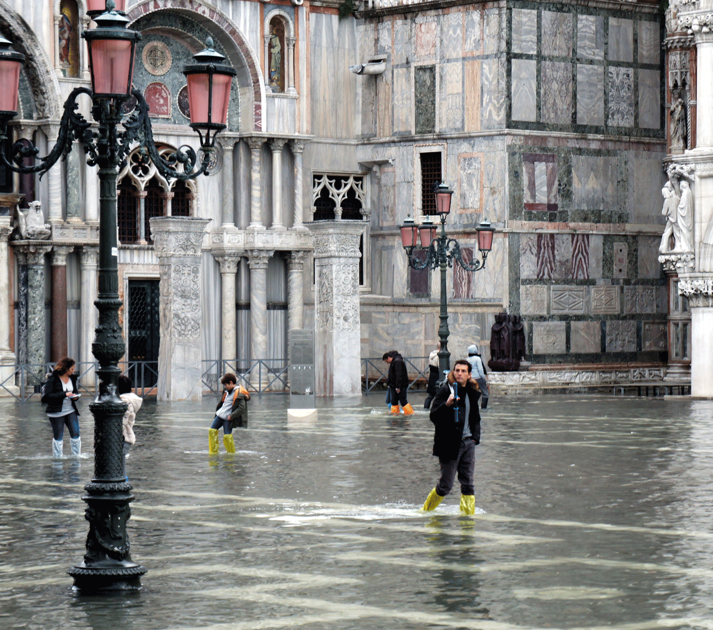 Flood levels reached record-high levels (74 inches) Tuesday night, November 12, when heavy rains hit the lagoon city and caused surging tides. More than 85% of the city is currently flooded, including the historic St. Mark’s Basilica and its adjacent square at the center of the city. According to Italian authorities, this is the worst flooding in Venice since 1966, when floodwaters reached 76.4 inches high.
