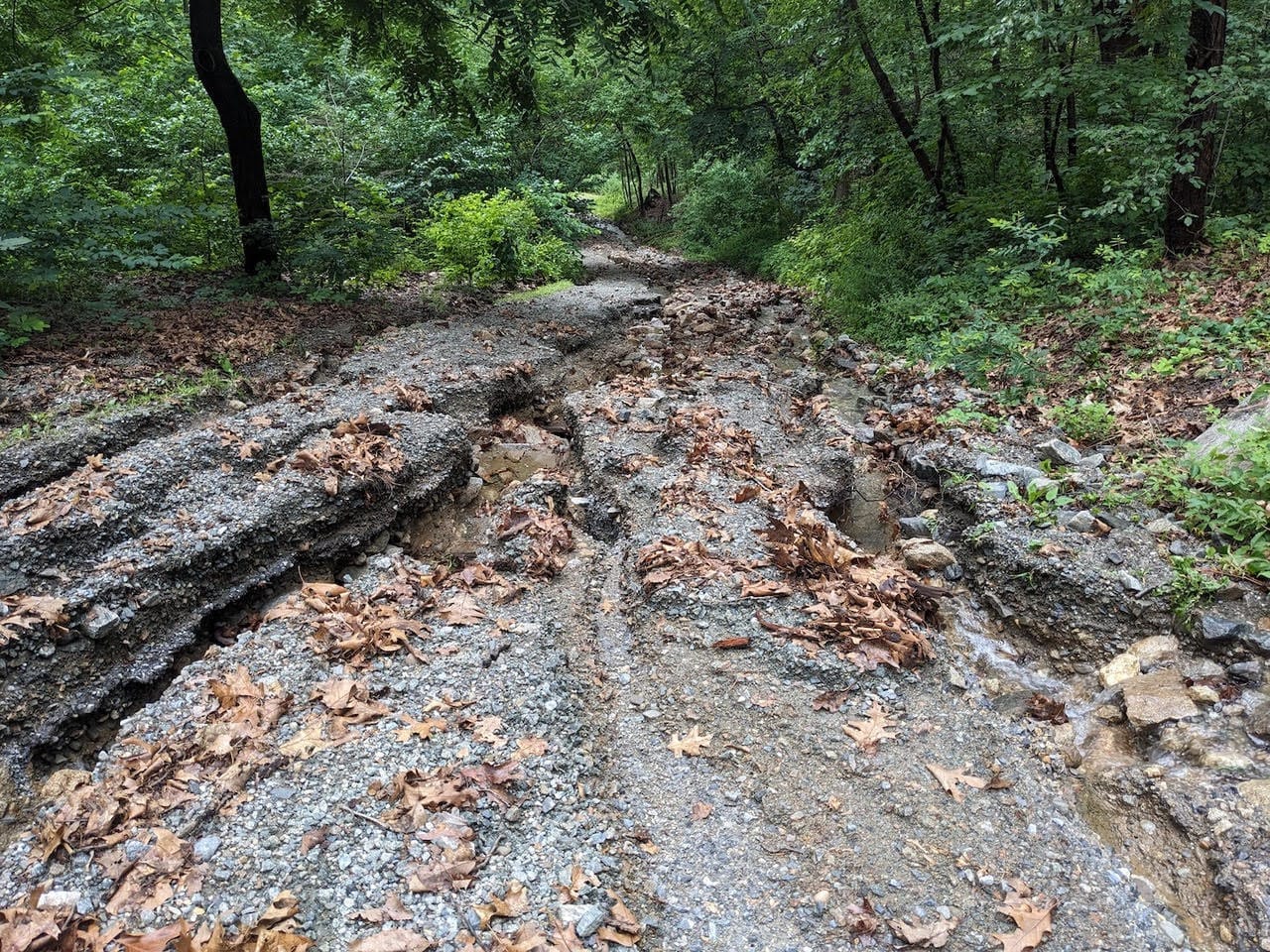 Manitoga, home of the Russel Wright Design Center and 75-acre woodland garden in Garrison, suffered extensive damage to its trails and landscape features. Vivian Linares, a spokesperson for the center, told Hyperallergic that Monday trail tours were canceled due to "significant damage to our grounds."