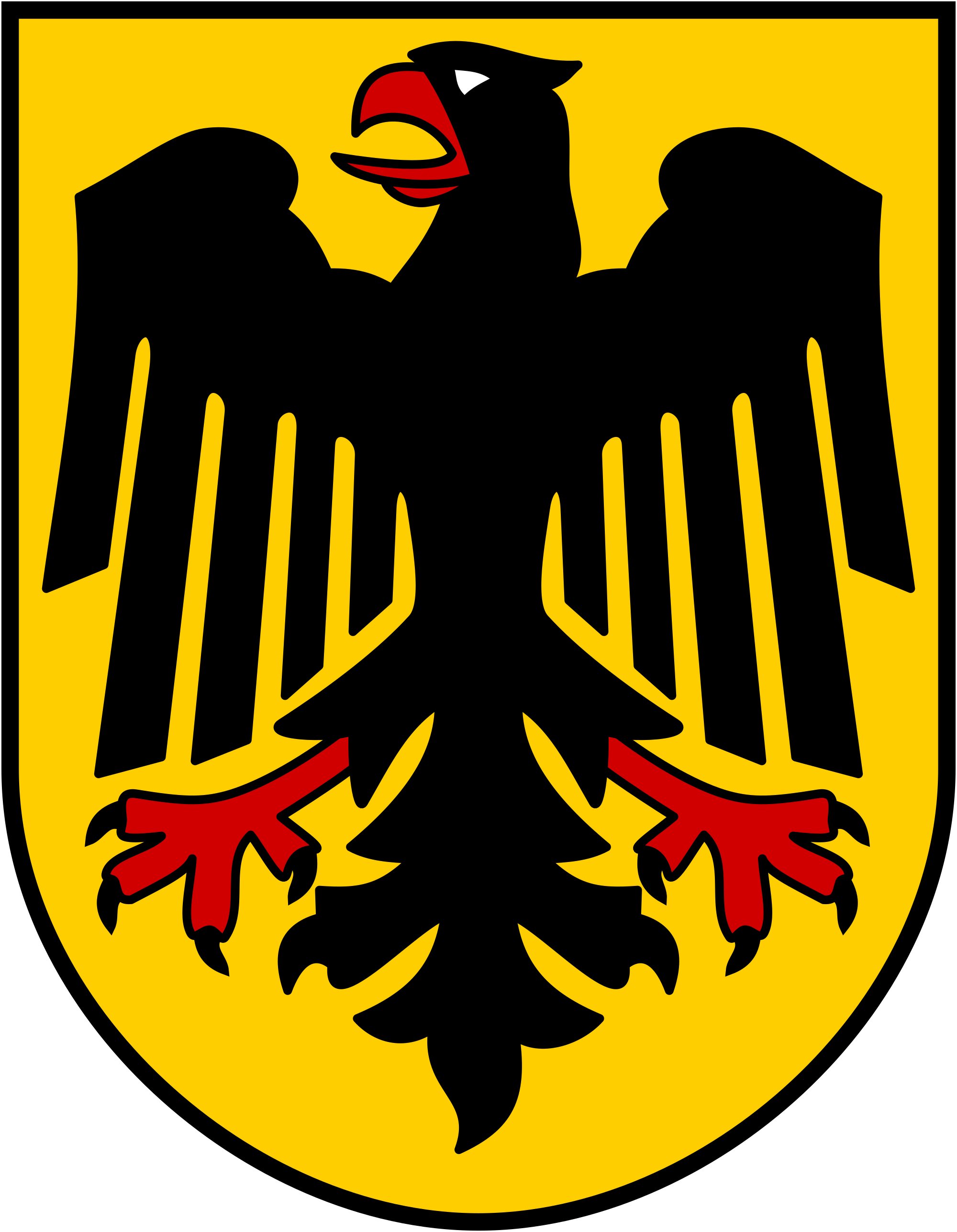 The origin of the eagle symbol lies in the Holy Roman Empire, during the 10th century, whose rule was represented by the Reichsadler (Imperial Eagle). It evolved into a double-headed eagle, and then a single-headed form became the symbol of the German empire (Second Reich) in 1871. After Germany’s defeat in World War I, the fledgling Weimar Republic democracy sought a new symbol that compromised with both the conservative past and the hopeful liberal present, in an attempt to unify a deeply divided country.