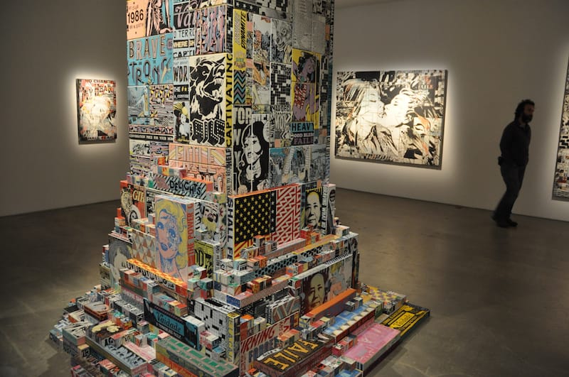 The group works best in three-dimensions, where their comic book visuals and vintage advertising style combined with their folksy (and sometimes unusual) sense of color to create oddly appealing visual mashups, but the collective tends to exhibit two-dimensional work in a gallery setting, it’s a shame. At their Chelsea show, the column at the center of the gallery was by far the best thing on display but it also highlighted how the art on the walls seemed hallow and unfinished by comparison.