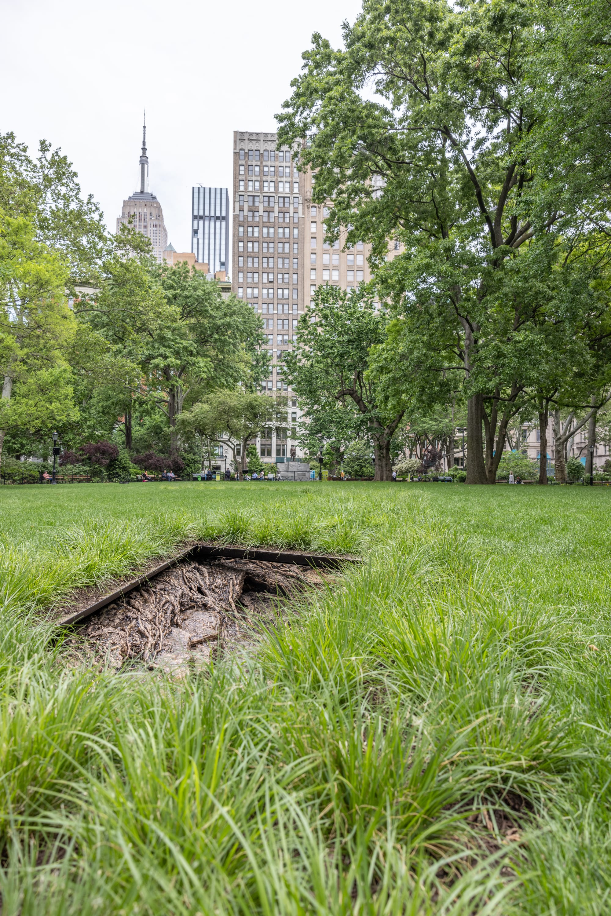 Two bodies of water once coursed underneath Madison Square Park. Spanish artist Cristina Iglesias engages with the layered, largely forgotten geographic history of this urban green space in a site-responsive installation of five subterranean bronze sculptures with elaborate bas-reliefs through which water flows.