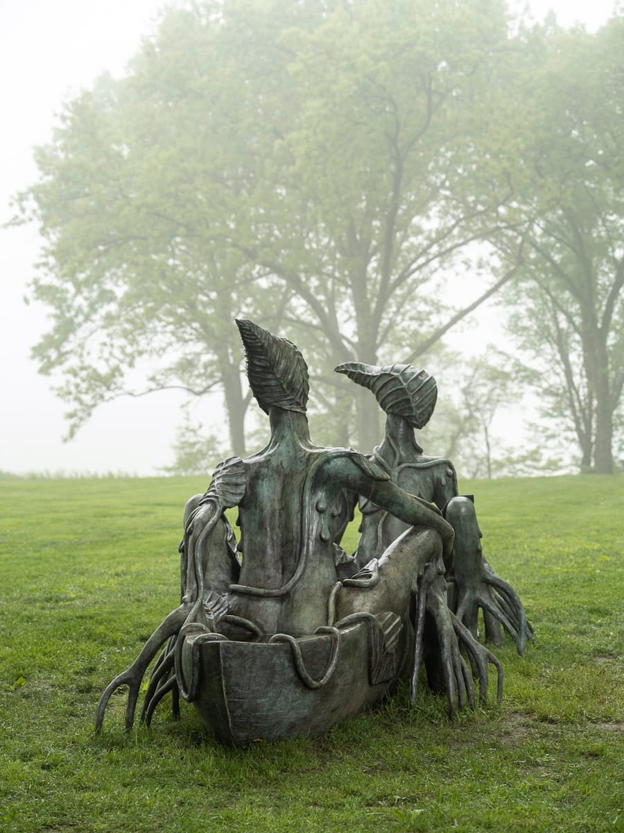 The Nairobi-born artist renders otherworldly, hybridized feminine figures to forge new myths and usher in potential alternative futures. Eight large cast bronze sculptures, including a 15-foot-long canoe that functions as a water fountain, dot Storm King’s grounds, while an indoor presentation pairs sculpture with film.