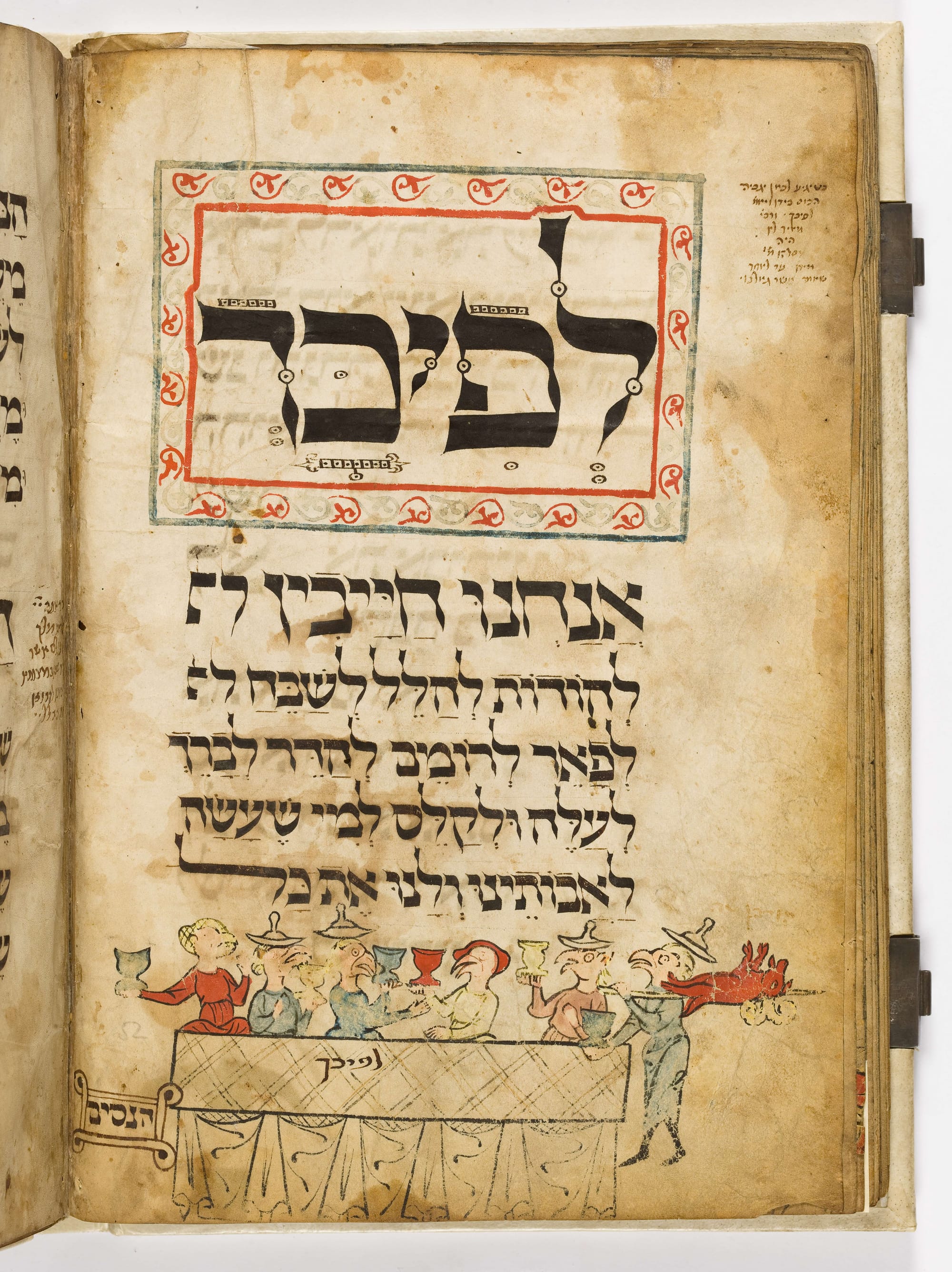 The Marum family is suing for the return of the "Birds' Head Haggadah," a unique medieval version of the prayer book used during Passover to read the story of the Exodus from Egypt. The manuscript, produced in South Germany around 1300, displays images of Jewish figures with the heads of birds, of which few examples exist. It also depicts rituals like making matzah and blessing food and wine, something other historic Jewish prayer books do not. The museum calls it the first known manuscript of its kind.