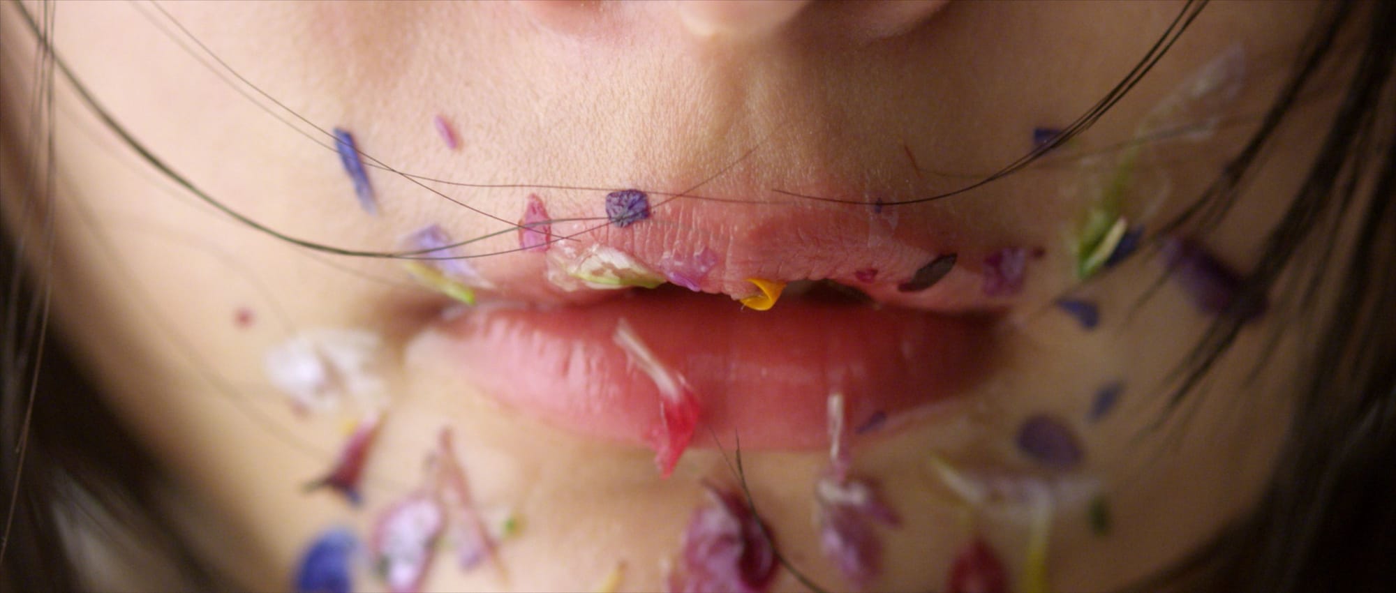 In Hottamaru Days, nymph-like spirits collect hair, skin, and nails, which they then transform into effigies. Eschewing narrative, the film instead follows the direction of the song and movement. Another highlight of the program was Yoshigai’s newest film, Grand Bouquet, starring emerging actress Hanna Chan. The film takes place in a liminal white space, where the isolated Chan vomits flowers, which then overtake the purgatorial environment. The flowers, coated in thick slime, are as ominous as they are beautiful, the contrast a striking symbol for the decaying Earth and our role in it. Rather than presenting the interconnectedness of life as sanitized and magical, Yoshigai interweaves an element of violence, as our relationship with our planet requires sacrifice to maintain balance.