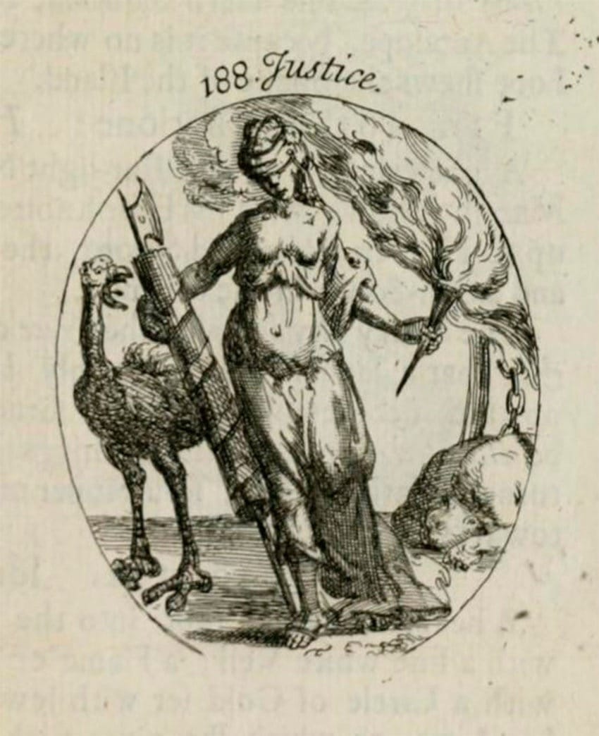Into the Renaissance and the early modern period, painters and sculptors used the fasces when depicting allegorical ideals such as Iustitia (Justice) and when depicting re-popularized myths from antiquity. In 1544, Battista Dossi painted Lady Justice holding the fasces as a mean of showing the balance between the scales of justice on one side and the punishment exacted by law on the other. In 1616, Peter Paul Rubens depicted the fasces with the myth of the Roman consul Publius Decius Mus sending away his lictors in 340 BCE. In popular early modern books on iconography, the fasces began to symbolize legitimate use of force in the service of justice. The state’s possession of the power to exact force through physical punishment was still the predominant message.
