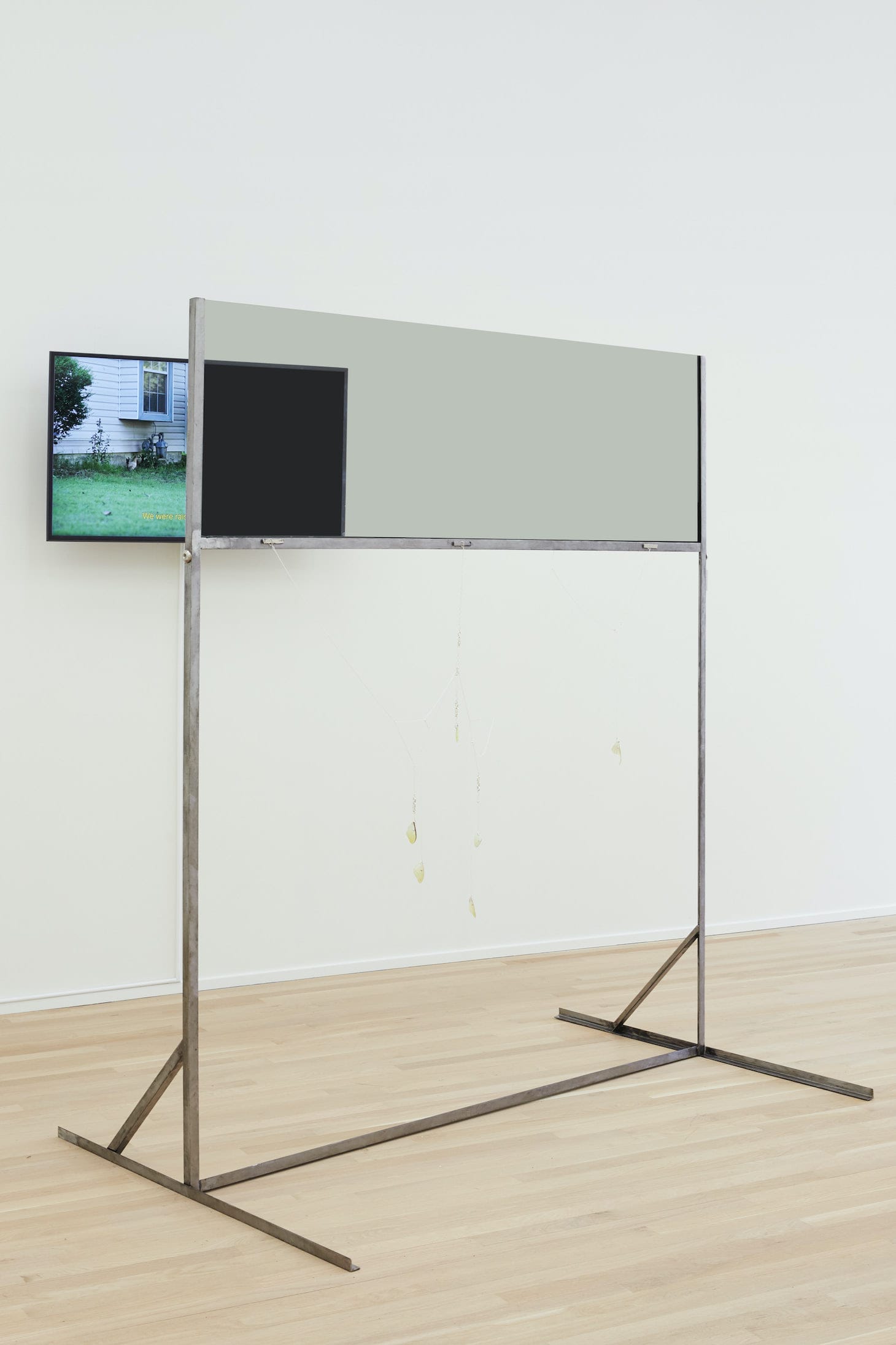Mev Luna’s video work, “Far from the distance we see” (2019), collects oral histories from members of Luna’s family in Houston. Accounts of working in a hat factory as a teenager and being targeted by the Houston police are interwoven with 3D animations and found video — splicing the typical seriousness of an interview into something layered, playful. Partially obscuring the video is Luna’s sculpture, “Action Office was meant to be about movement II” (2019), in which viewers can see themselves reflected via privacy glass as discolored and cloudy glimpses of the film shine. Near Luna’s work is Jason Lazarus’ installation, “2019 — Present (26 Sound Screens)” (2020), in which white noise machines typically employed by therapists for confidentiality background the exhibition, and Luna’s work in particular, with an ambient buzz.