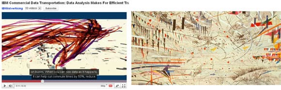 First it was the Goldman Sachs mural for their new building in lower Manhattan — which people appear to be eager to touch — and now IBM is riffing off her style for an animate video about commercial data transportation. I wonder if it freaks Mehretu out a little that the big wigs in corporate America seem to “get” her.