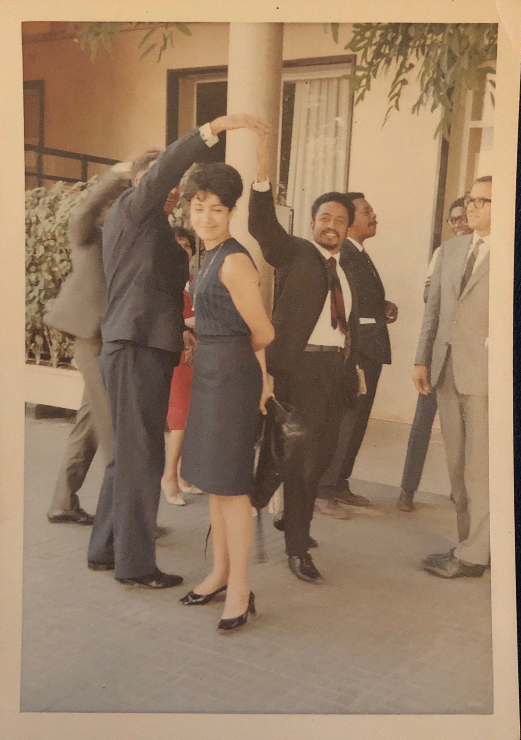I asked the artist whether she attended conferences or had conversations with her peers in Dakar about racism and colonialism. She remembered clearly that she did not. During her stay, she was mainly attending the performing arts program, and even admitted to “not taking things so seriously back then.” Pointing to a photo of her next to Maurice Senghor, Leopold Senghor’s nephew, she recalled: “I met Maurice in Dakar. He took me around and helped me navigate the festival by recommending shows to attend. I attended performances from different regions, from Chad, from Mali … I even attended Duke Ellington’s concert and bowed to the Ethiopian emperor Haile Selassie… My husband thinks that at that age I certainly did not realize the importance of what was going on. Indeed, he is right.”