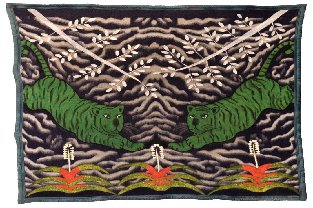 Centurión’s textile works engaged with folk art and queer aesthetics in 1990s South America. Through embroidery and painting objects like blankets and aprons, Centurión rendered poetic readings of his youth in the tropics, his metropolis love experiences, and his spiritual reflections before his untimely death by AIDS-related illness. “Centurión’s form of activism and resistance was intimate and affective, focusing on love, spirituality, and humor — the shelter, or abrigo, that art can provide in a hostile world,” said exhibition curator Gabriel Pérez-Barreiro.