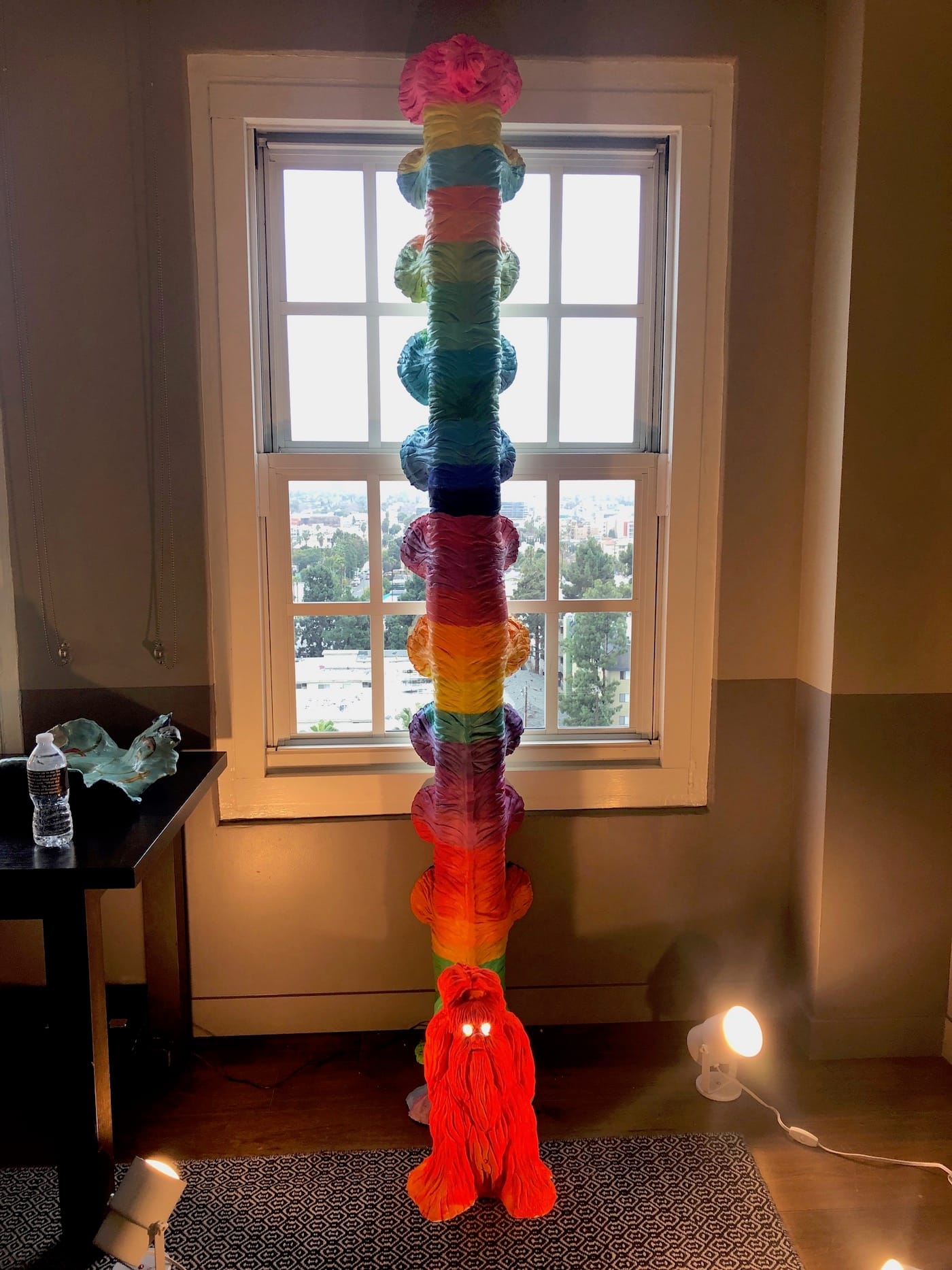 A major hiccup in fair operations had to do with the one segment of government that seems to run with astounding efficiency: the Fire Marshal had the entire second section of the fair, located on the 11th floor, on a veritable lockdown. What this meant, practically speaking, was that the line for the elevator was almost out the door and the rewards were mixed for those who chose to brave it. Once upstairs, the hotel rooms were sparsely attended by design and despite a humorously striking tangerine dog by Ilona Rich tucked away in a shower stall in the Kenny Schachter booth (it was a great day for bathroom art), most galleries chose not to utilize the hotel rooms in any particularly novel way, instead settling on safe, sellable artworks and presentations — a missed opportunity. That being said, The 13th Floor, an exhibition curated by Andrew Berardini and presented by the French Committee of Art Galleries, is a must-see. Between the view, the takeaway newspaper essay that doubles up as an exhibition checklist, and the French film noir vibes of the work, the grand finale of the Felix fair makes it worth the trip up.